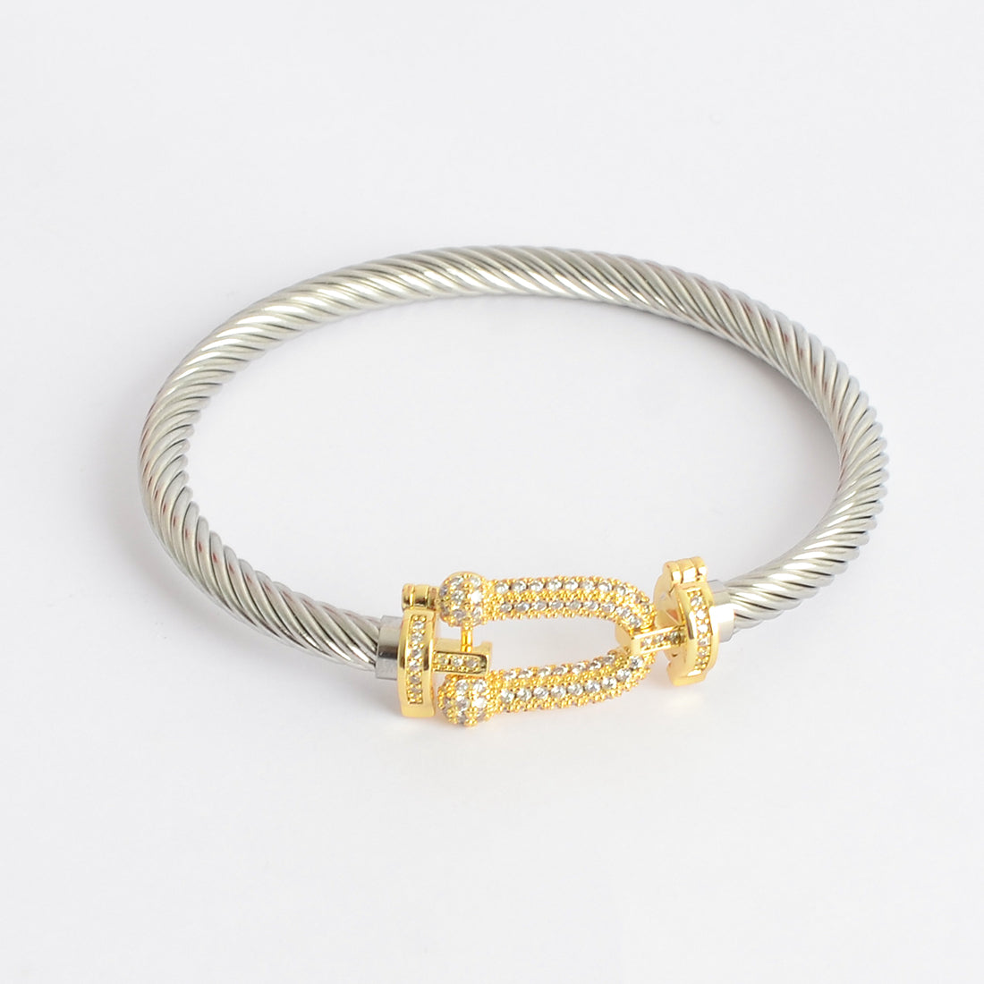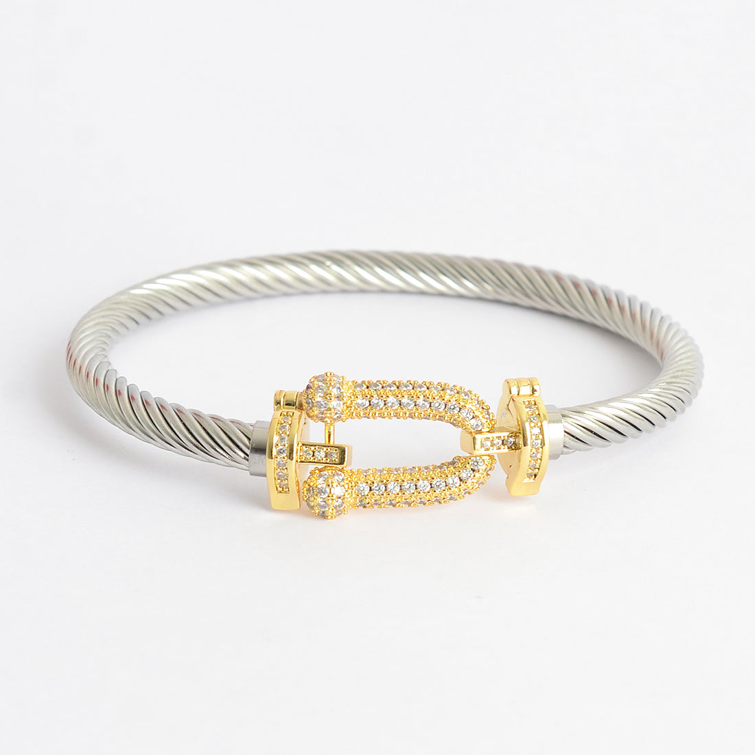 - سوار أنيق مرصع بفصوص الزركون على شكل حرف U باللون الذهبي