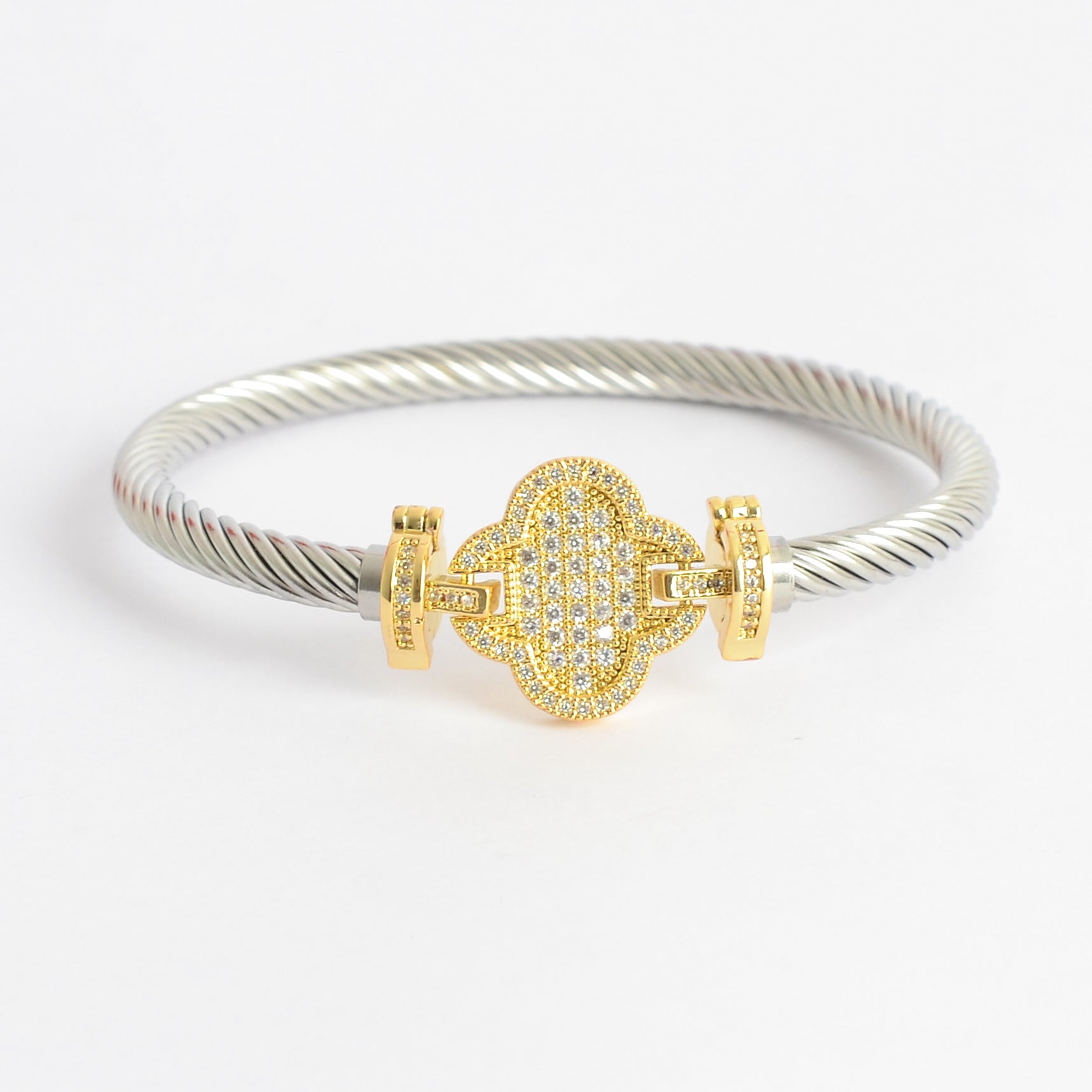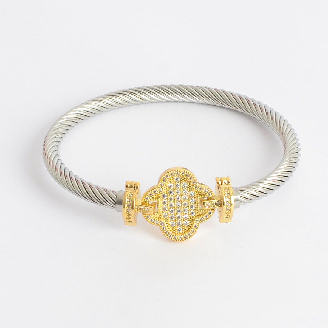 - سوار أنيق مرصع بفصوص الزركون على شكل زهرة رباعية
