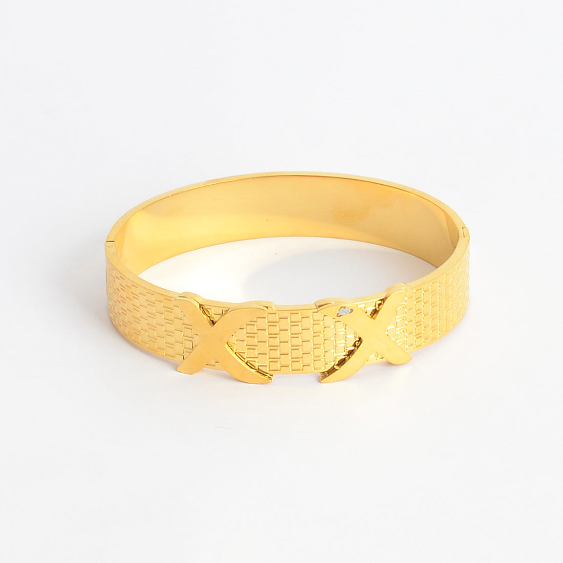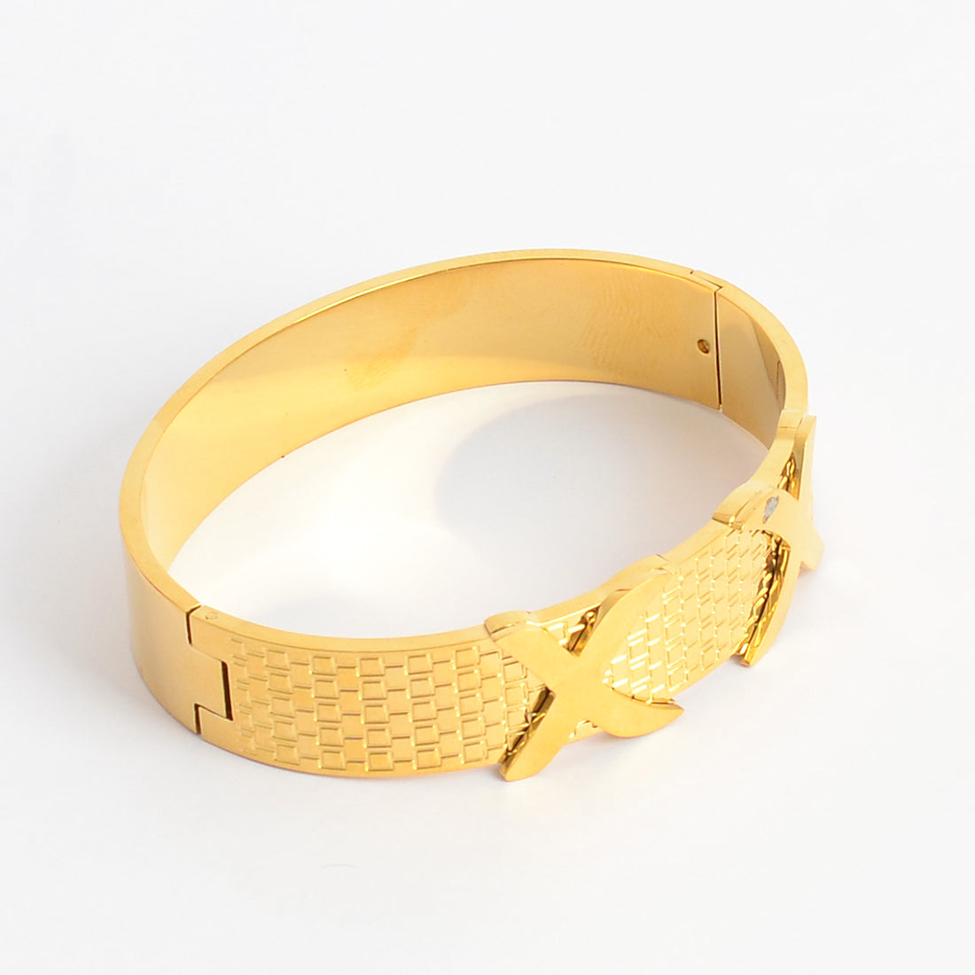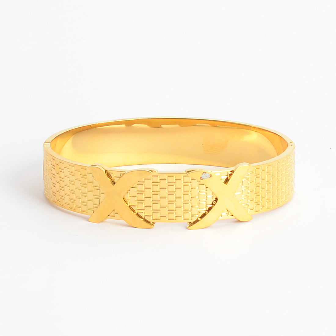 - سوار يد عريض تصميم نقش بارز لحرف X