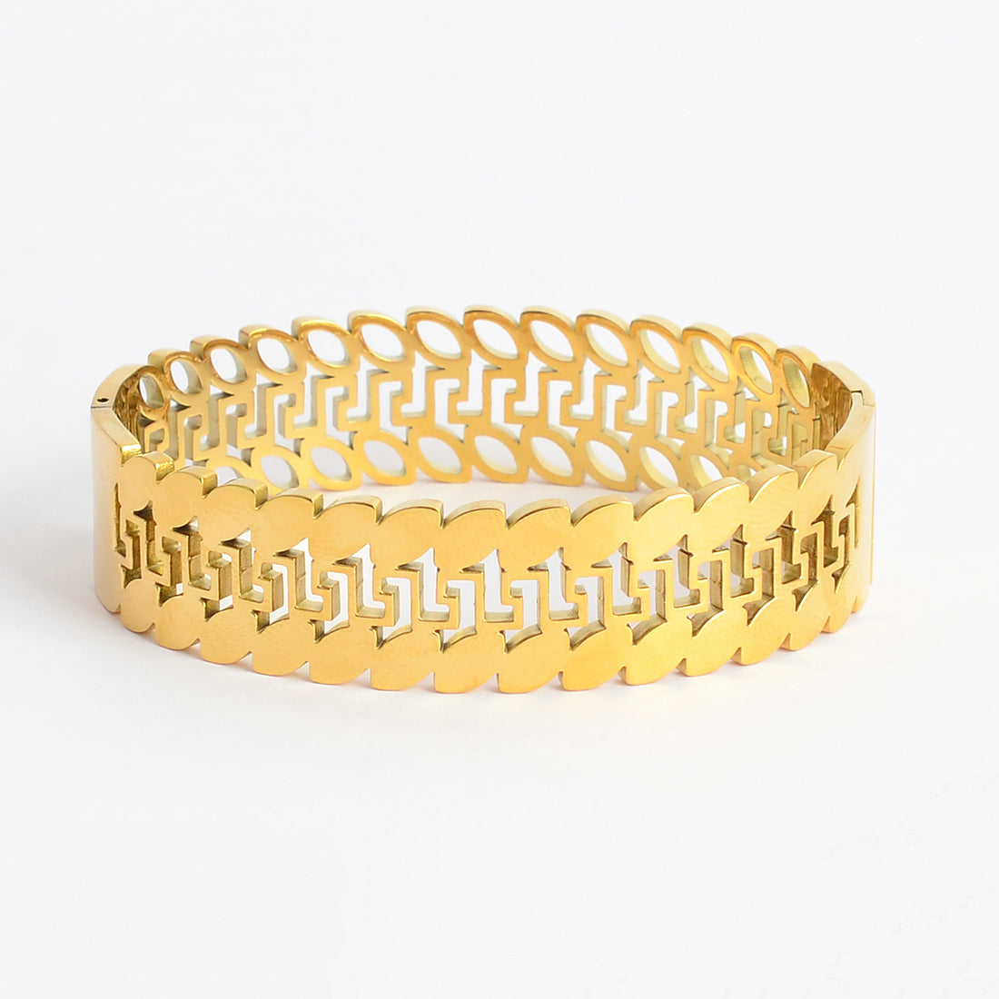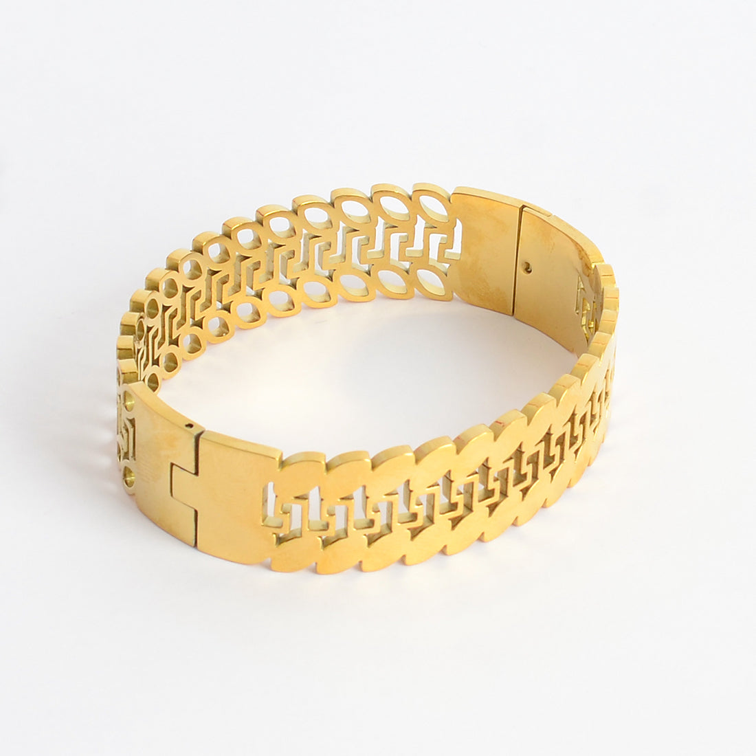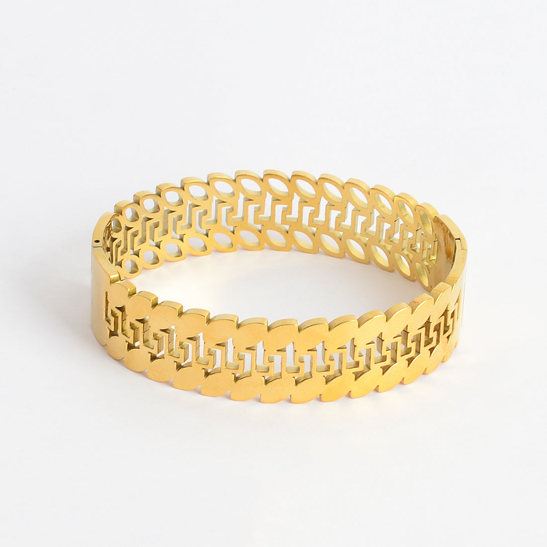 - سوار يد عريض صفوف متشابكة من الحلقات المستطيلة والمفرغة
