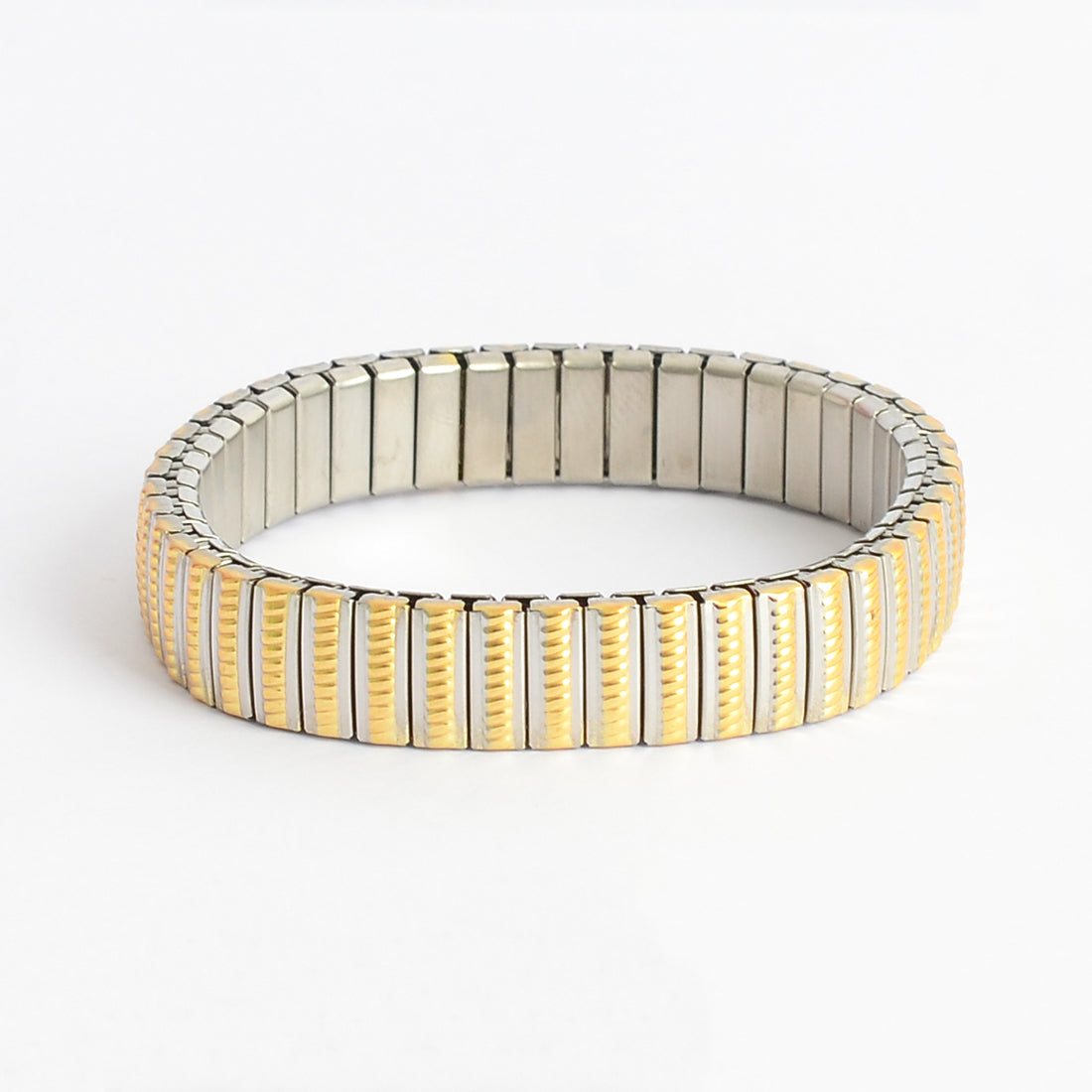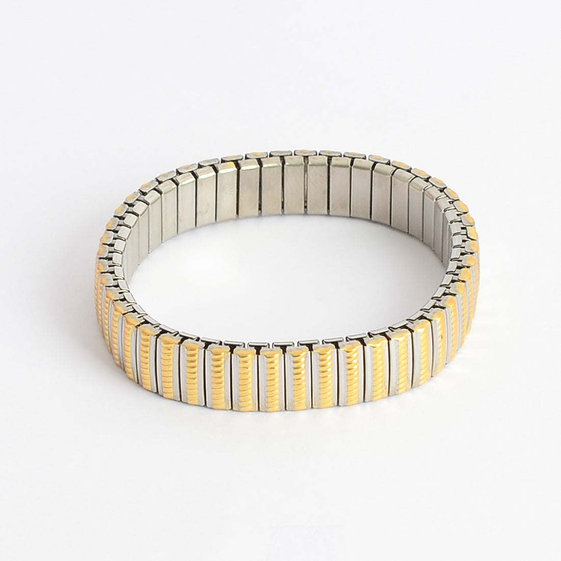 - إسورة معدنية بتصميم مرن يجمع بين اللونين الذهبي والفضي