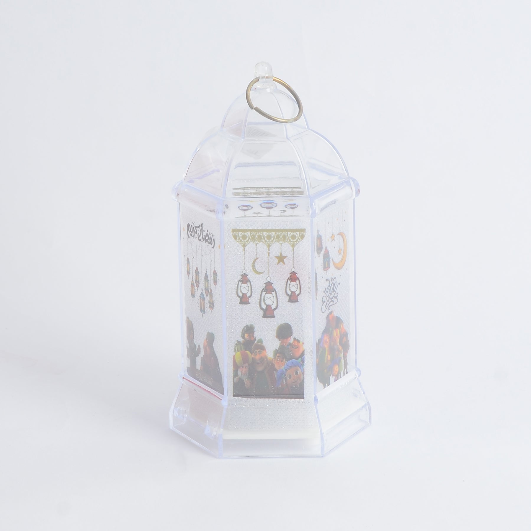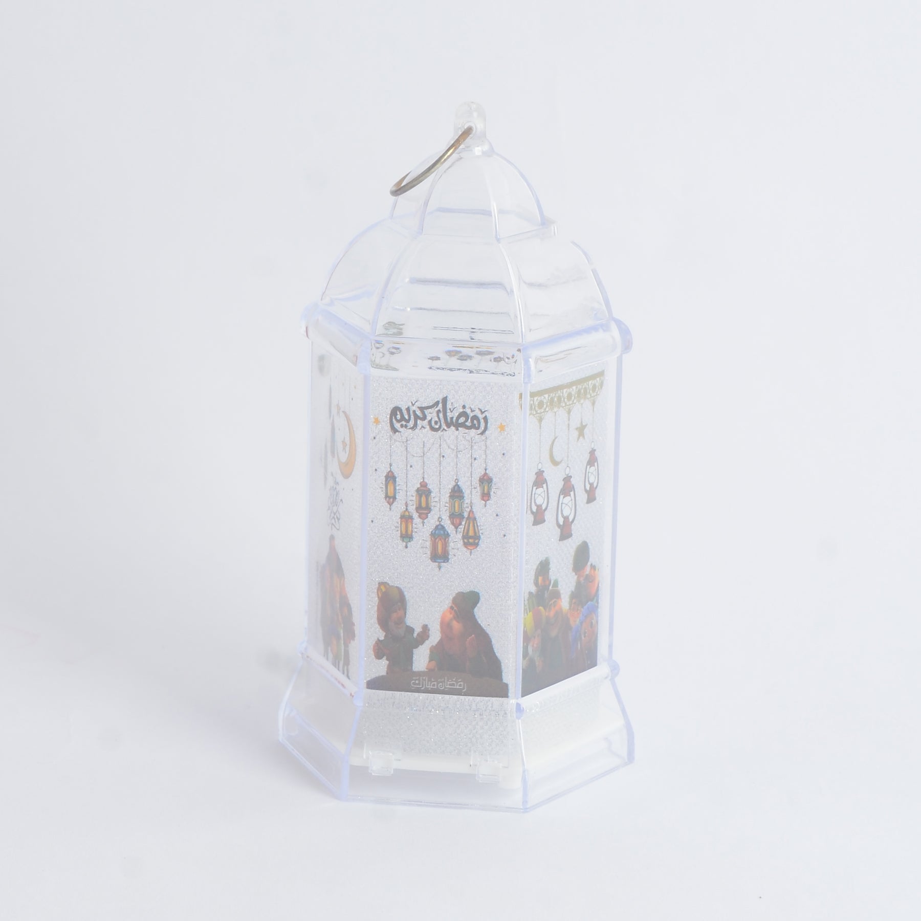 - فانوس فيه جوانب شفافة مزينة بنقوش رمضانية