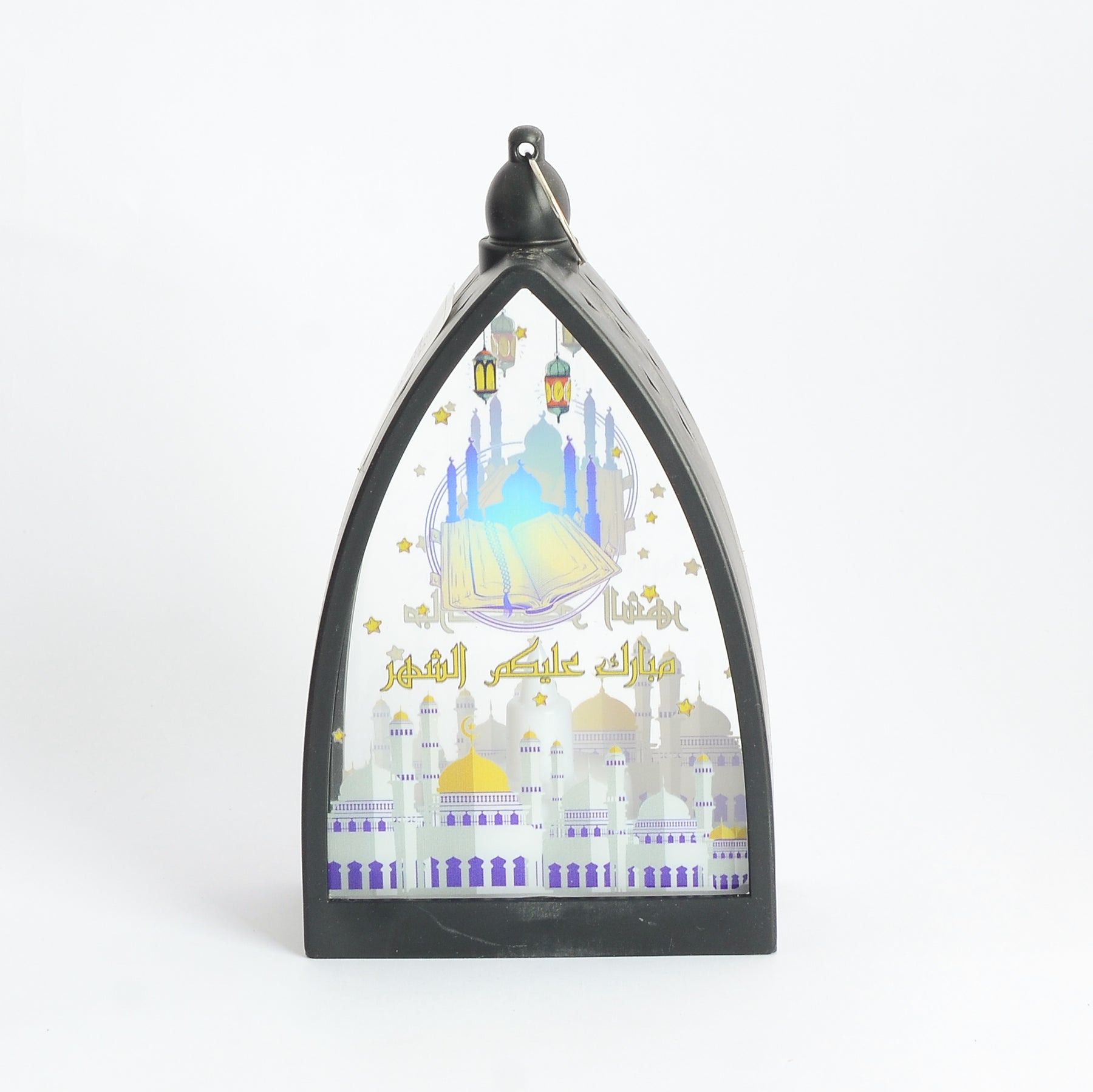 - عبارة عن فانوس رمضان بشمعه ليد مصنوع من البلاستيك والاكريليك بتصميم هرمي
