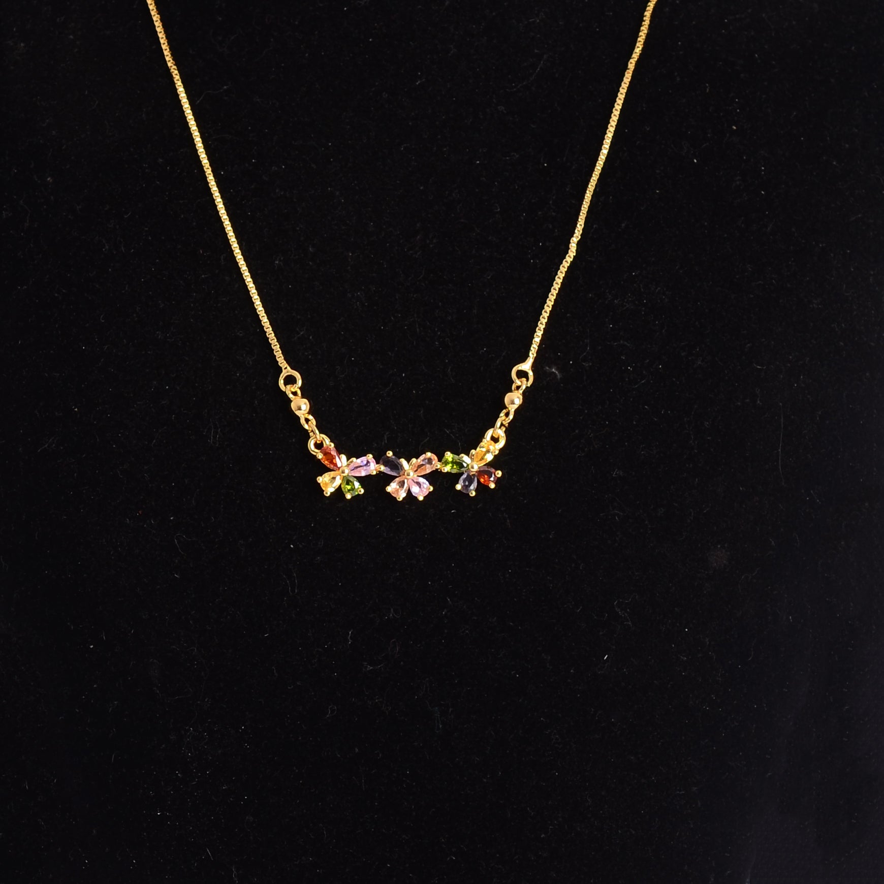 - سلسلة بدلاية ثلاث فراشات مرصعة بفصوص الزركون الملونة