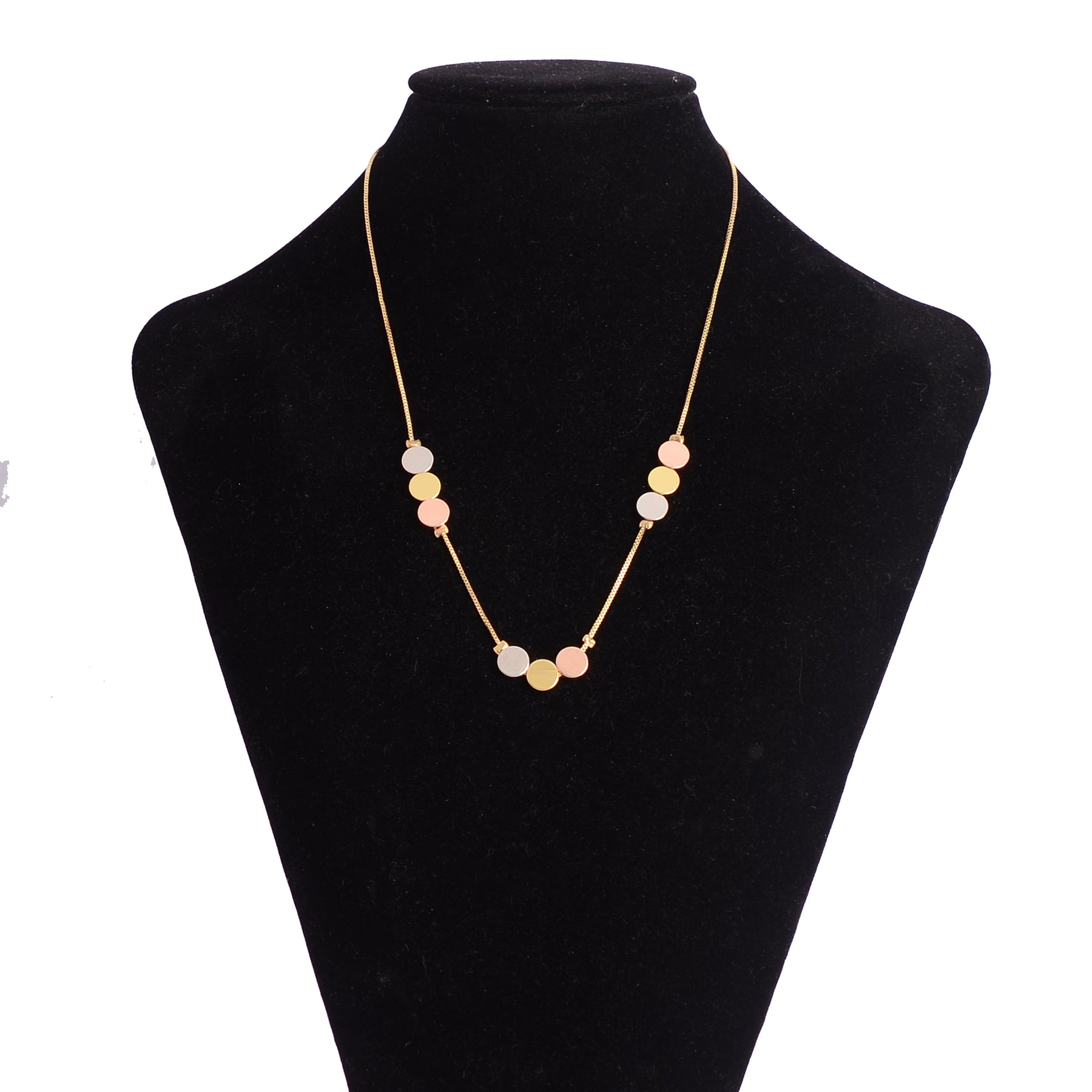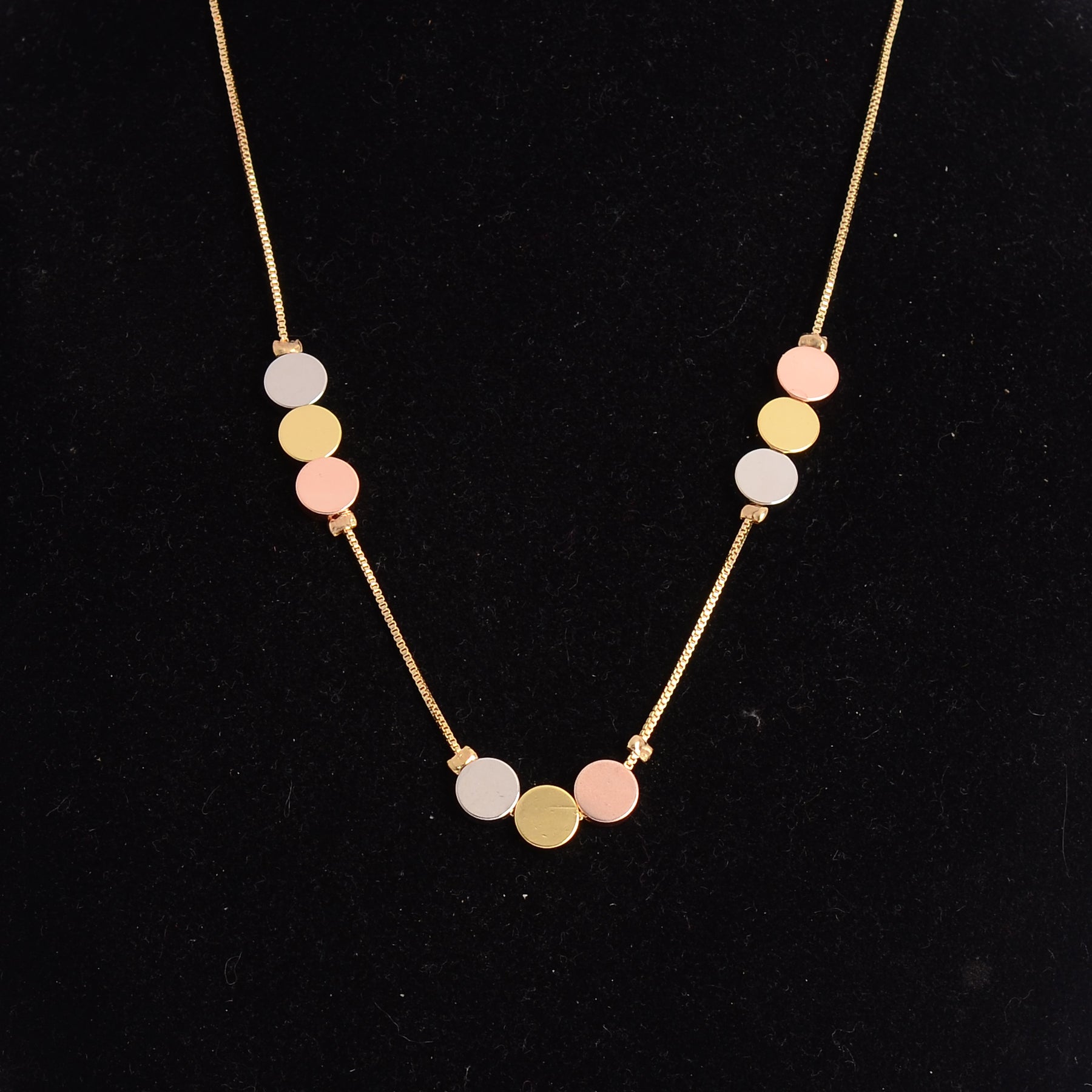 - سلسلة عصرية بدوائر ملونة عبارة عن سلسلة بدلايات متصلة شكل دوائر بثلاث ألوان ذهبي وفضي وزوز جولد