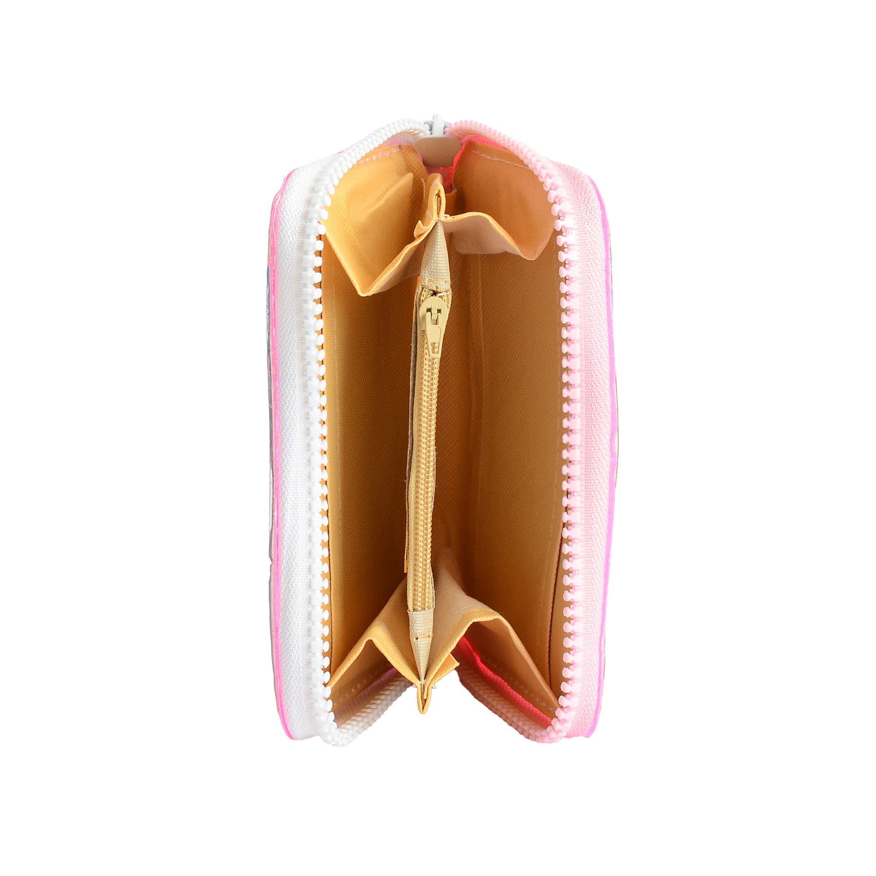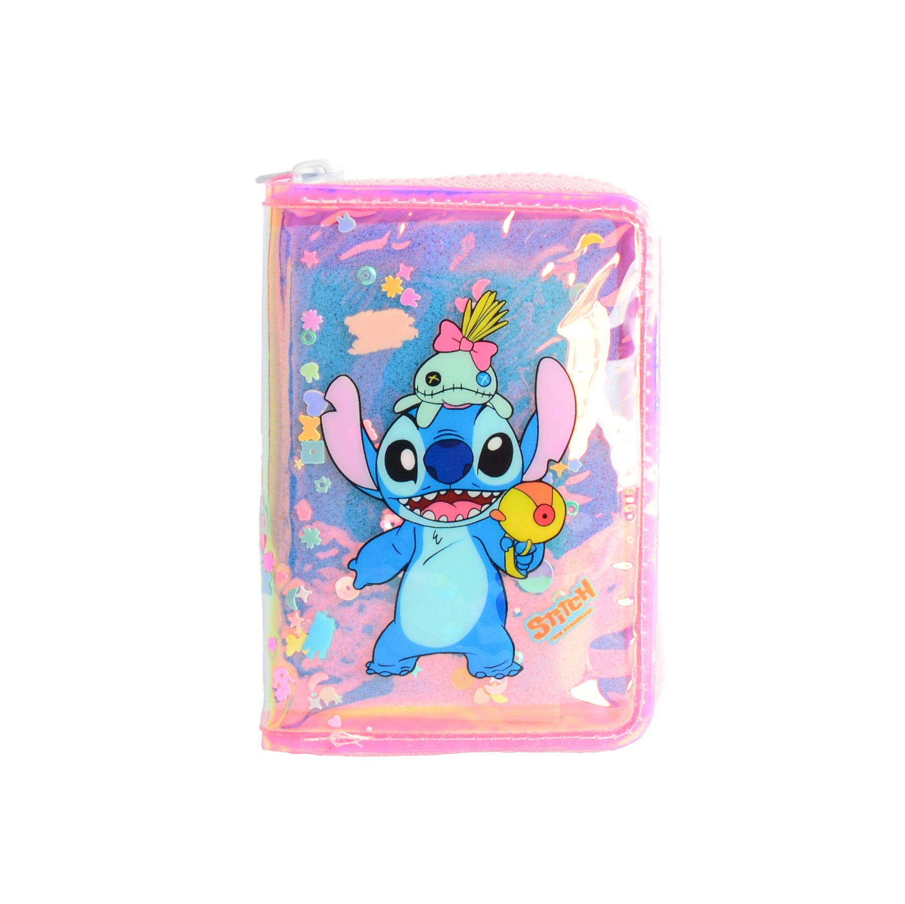 محفظة بناتي كيوت بسحاب تصميم عصري برسمة ستيتش لون بينك