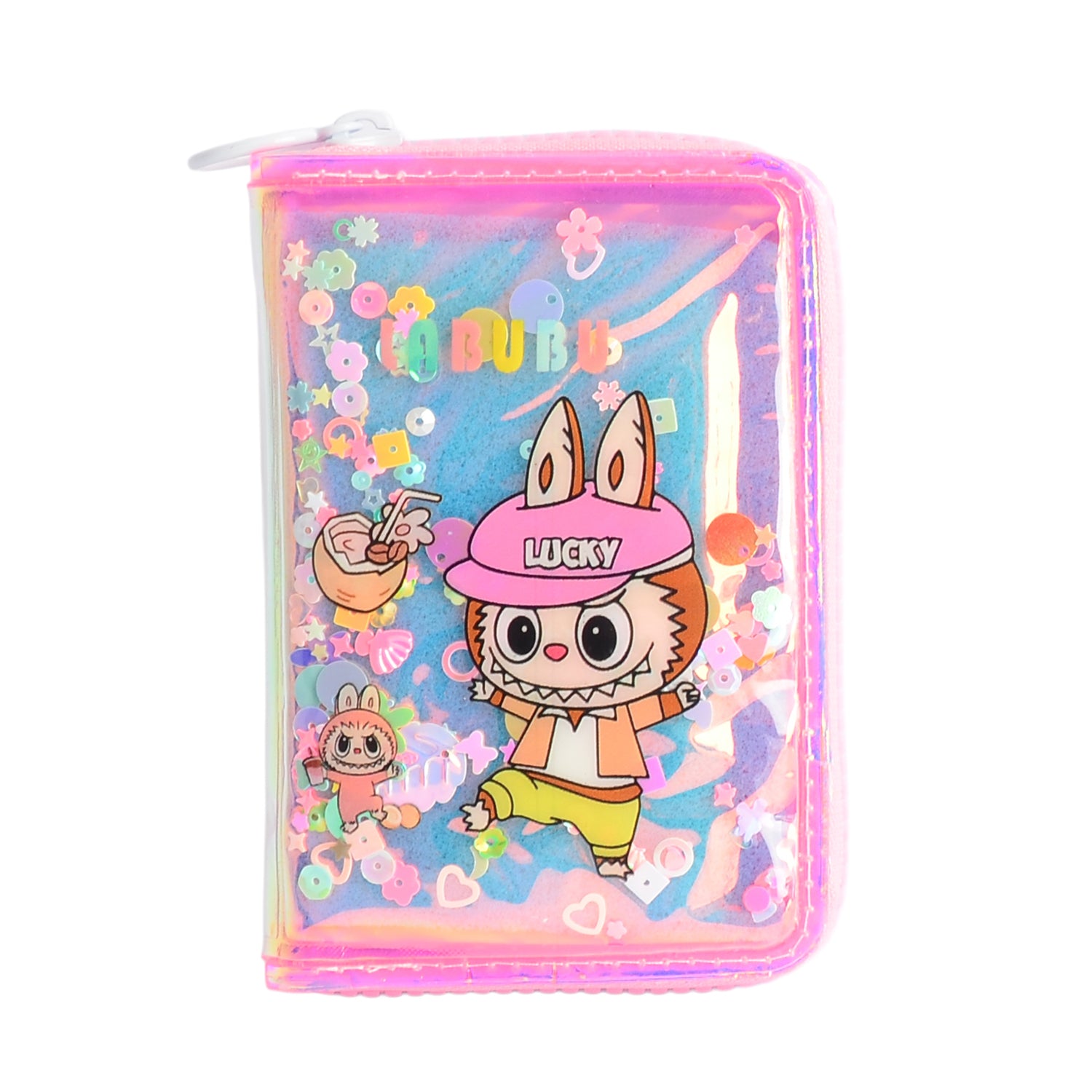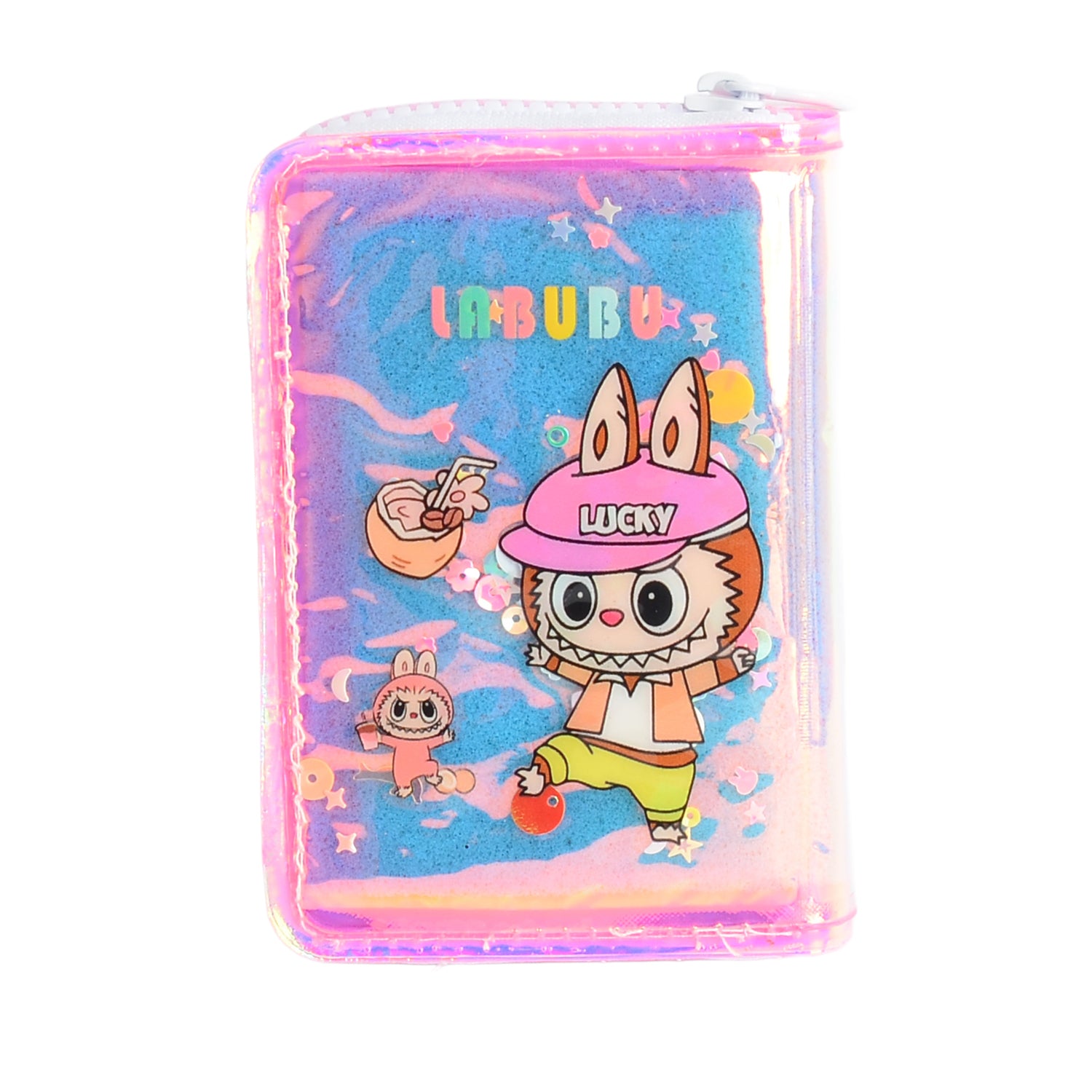 محفظة بناتي كيوت بسحاب تصميم عصري برسمة لابوبو لون بينك