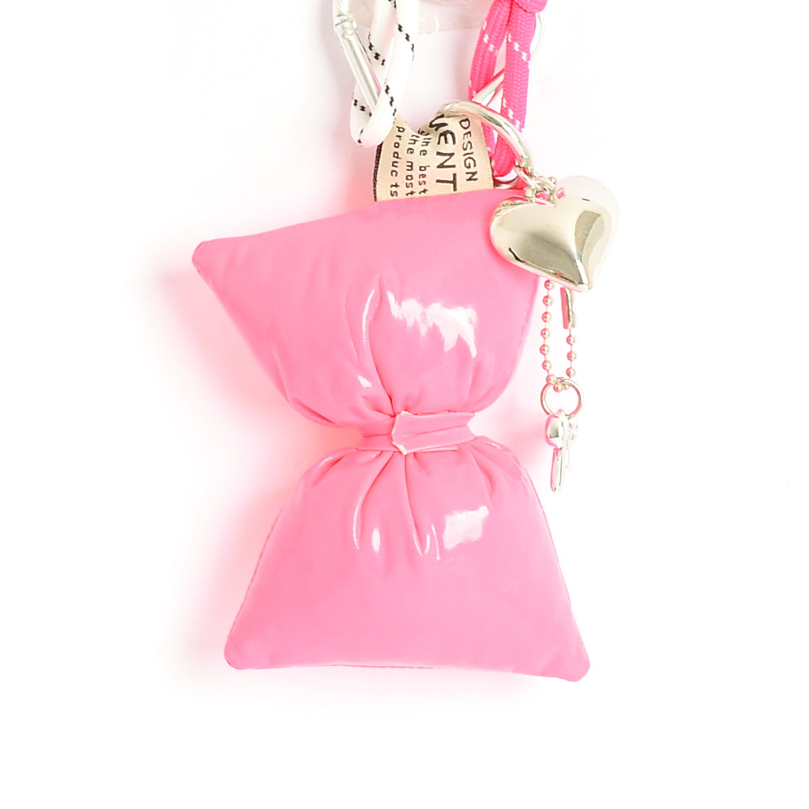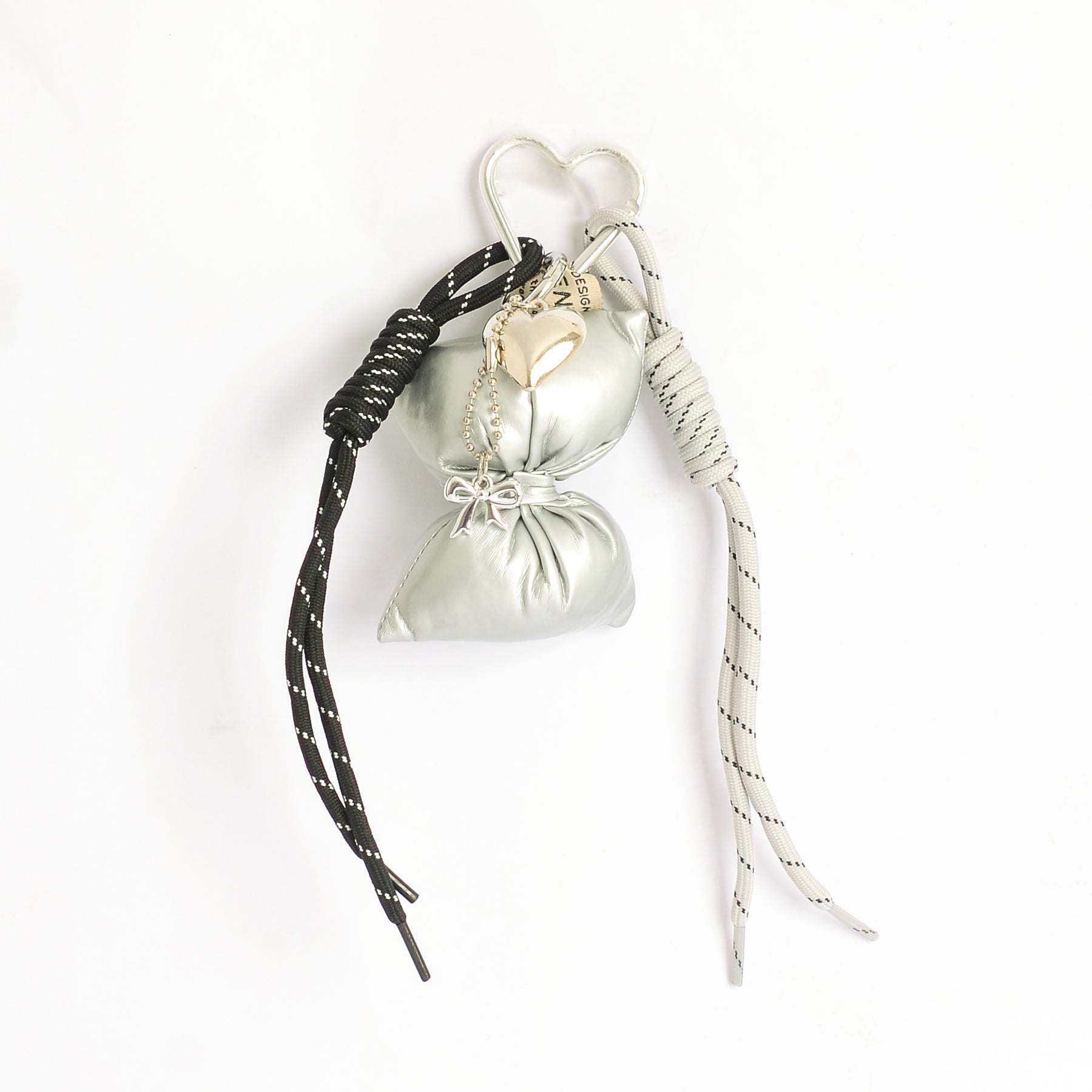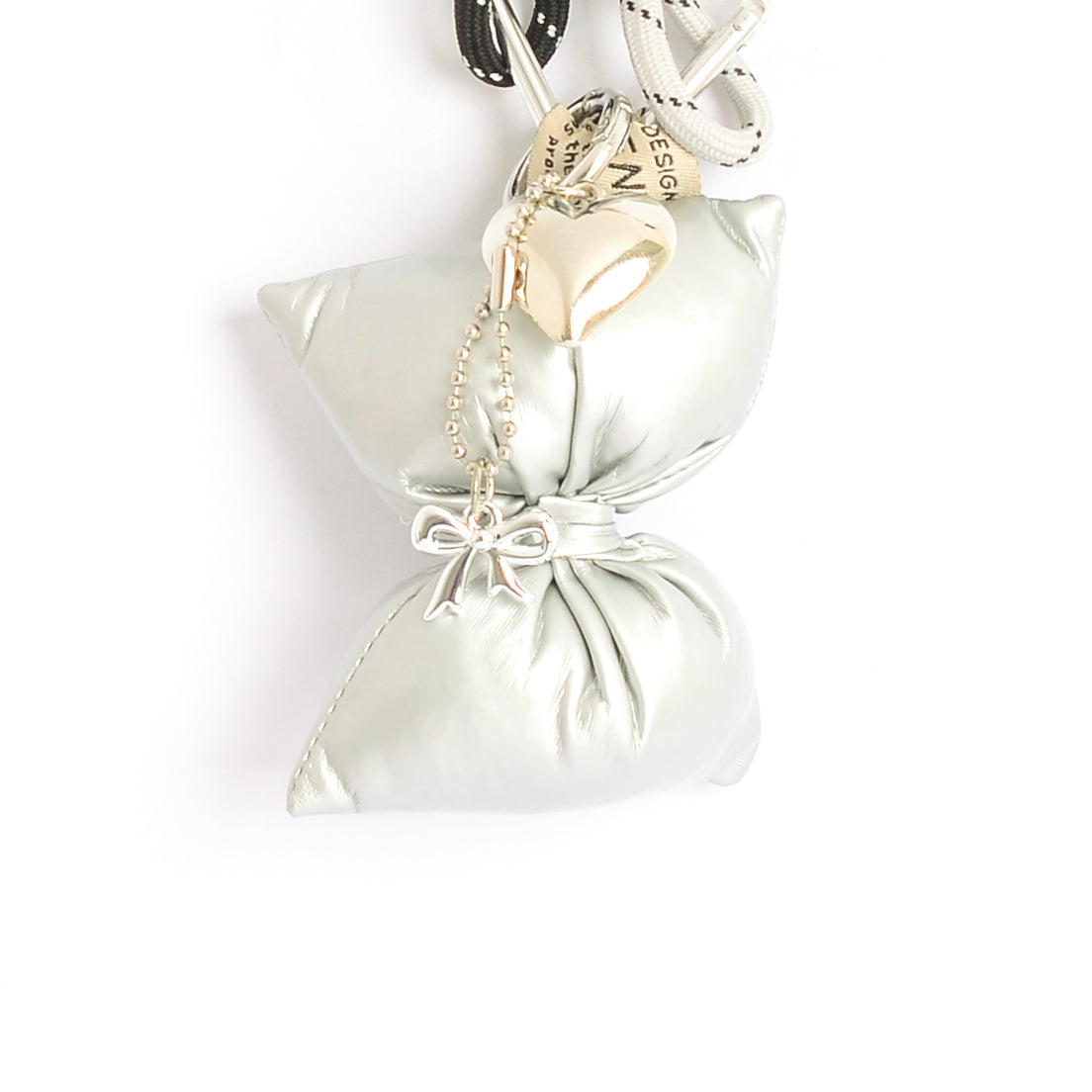 - مع تعليقة قلب وفيونكة تضيف لمسة جمالية لطيفة على الشنطة ومناسبة للهدايا