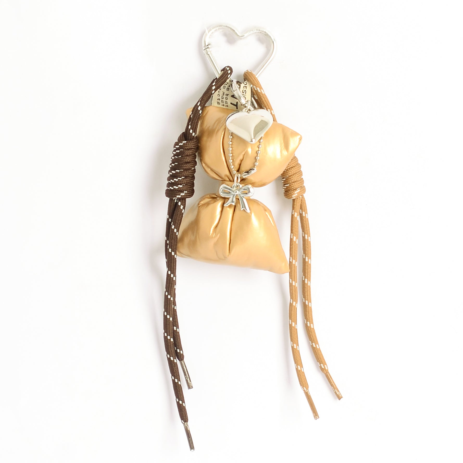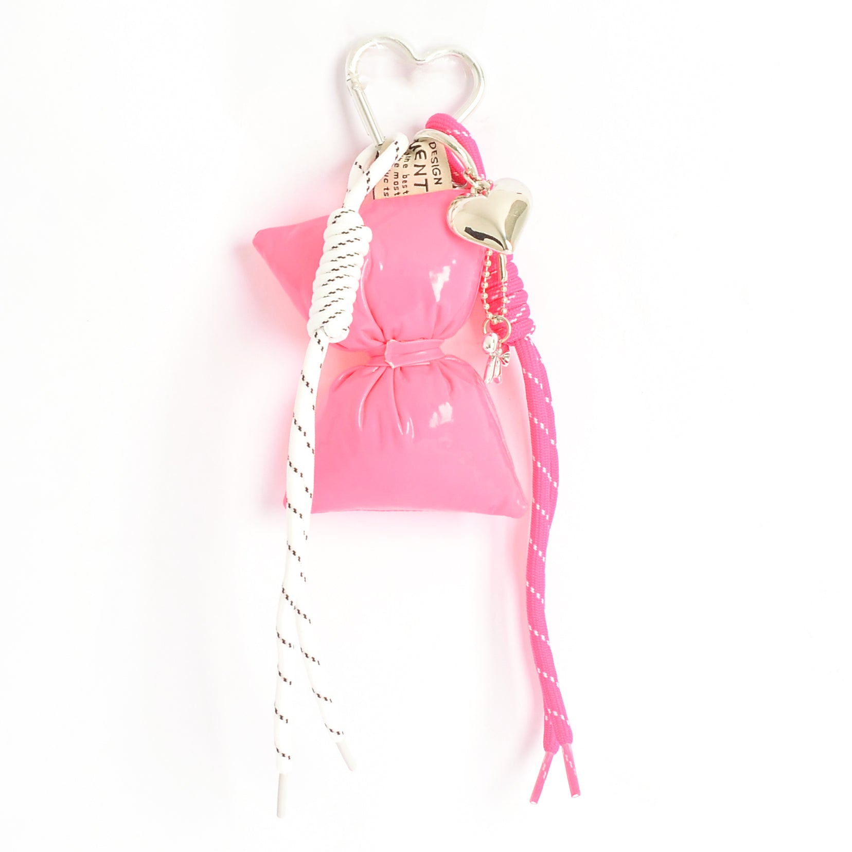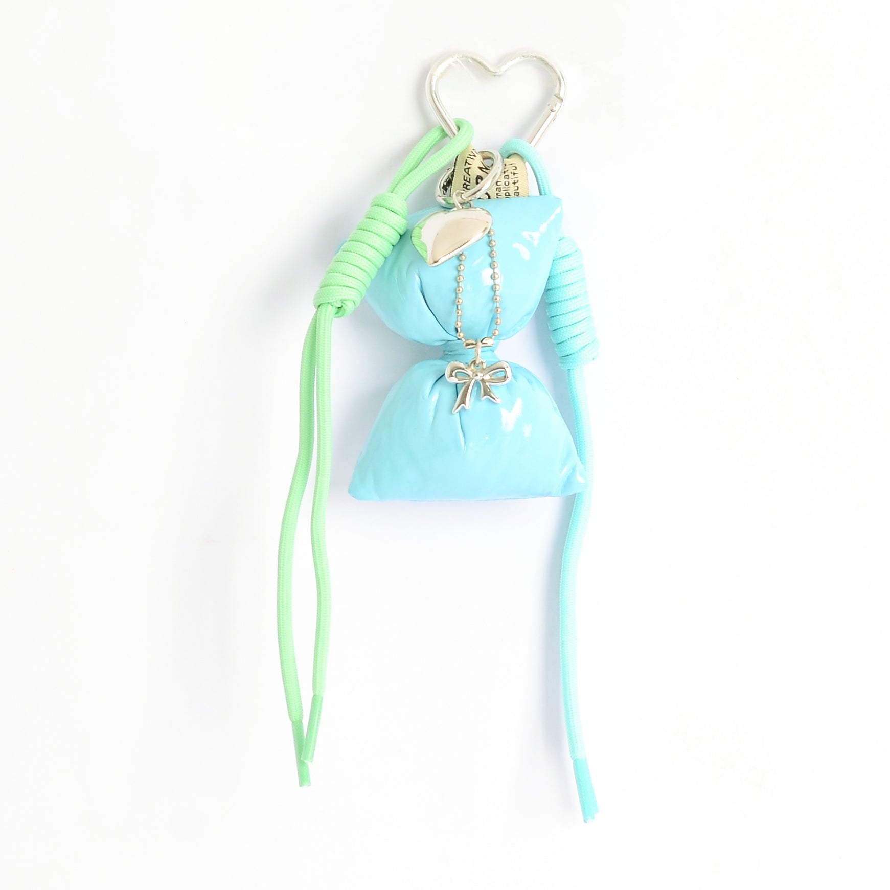 - مع تعليقة قلب وفيونكة تضيف لمسة جمالية لطيفة على الشنطة ومناسبة للهدايا