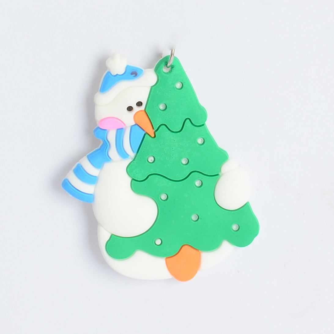 - ميدالية مفاتيح كريسماس بتصميم بتصميم رجل الثلج مع شجرة