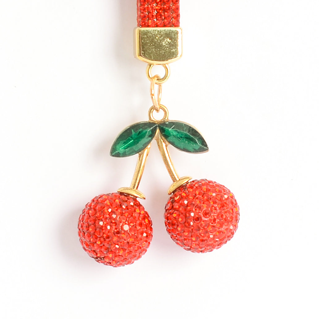 - تميز بقطعتين من الكرز الأحمر اللامع بفصوص الراين مع ورقة خضراء