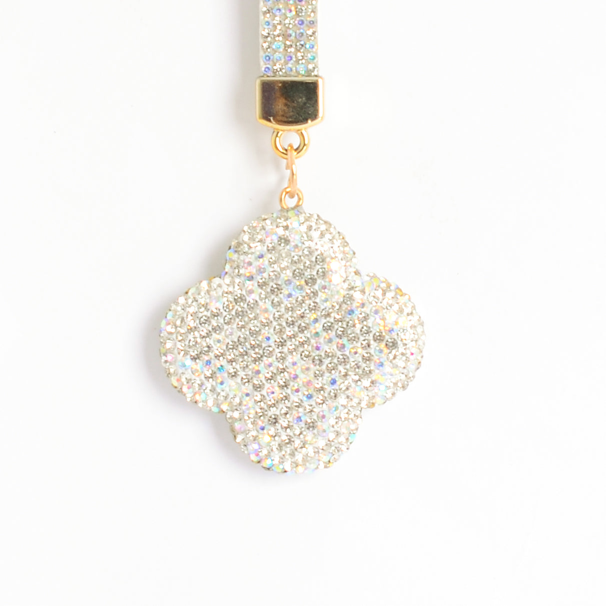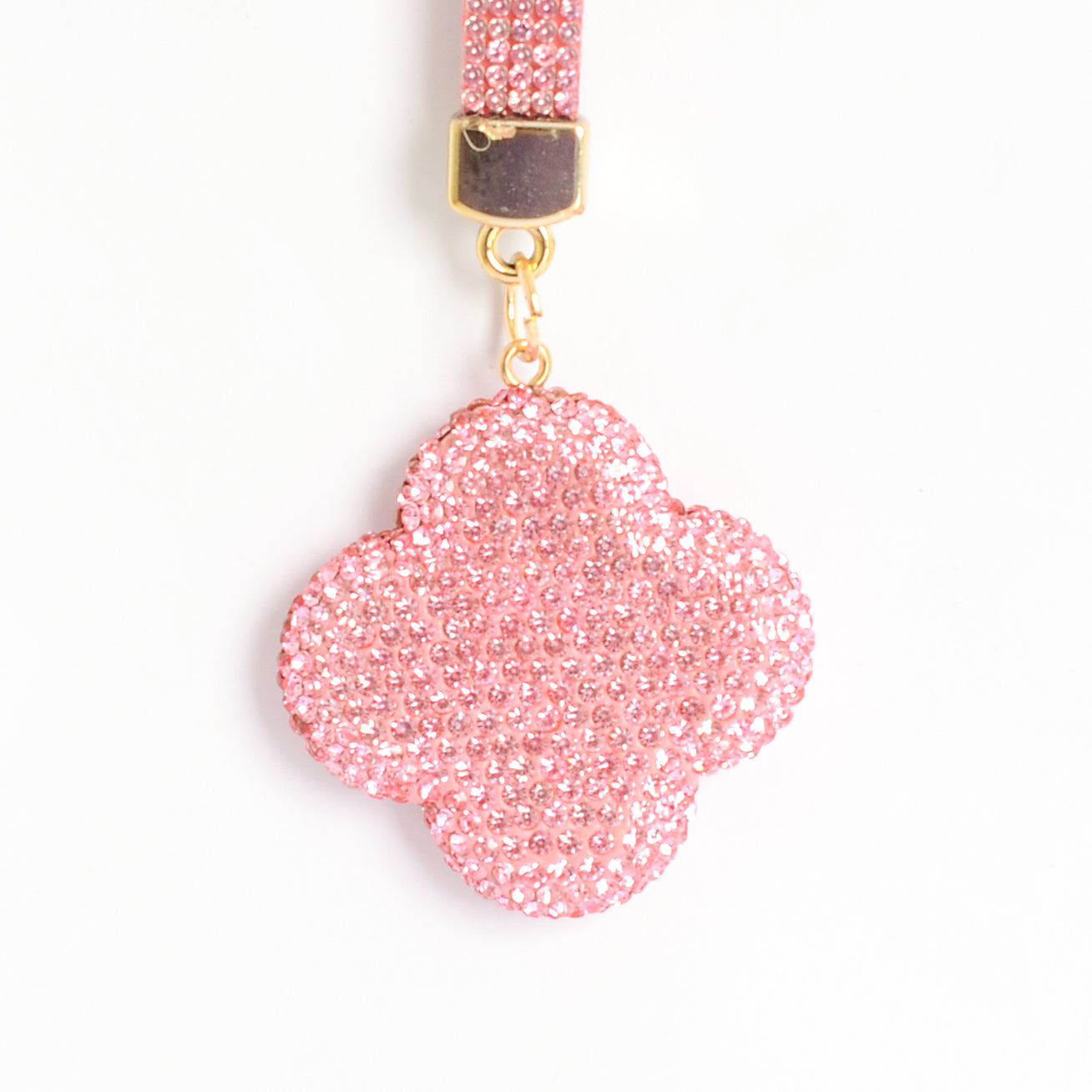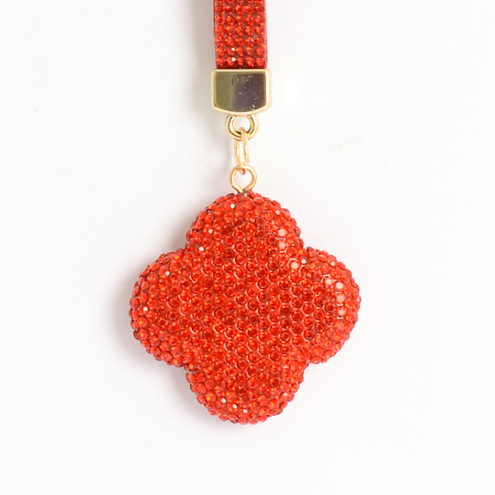 - ميدالية و سلسلة مفاتيح ودلايه شنطة يد على شكل زهرة رباعية بأحجار الراين :