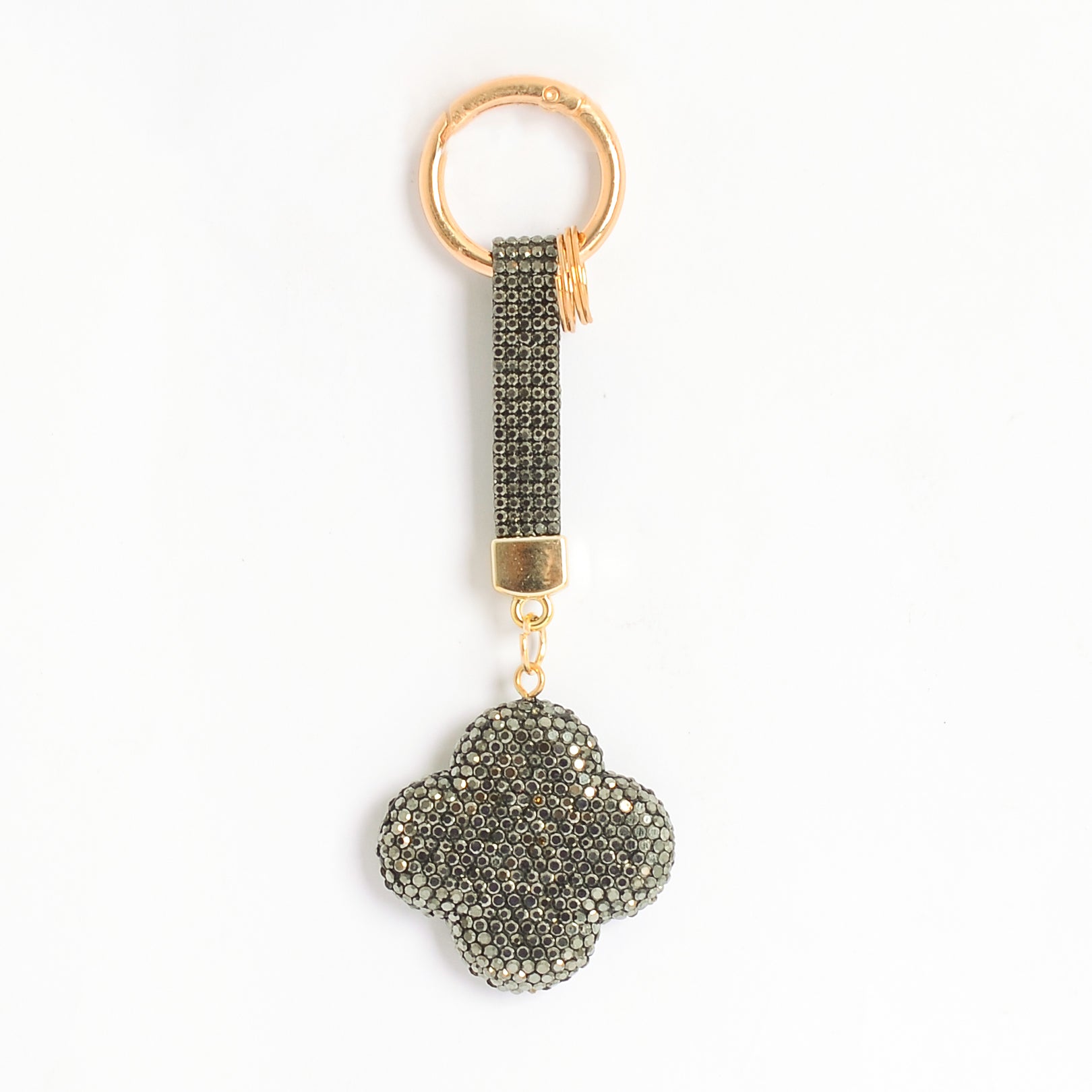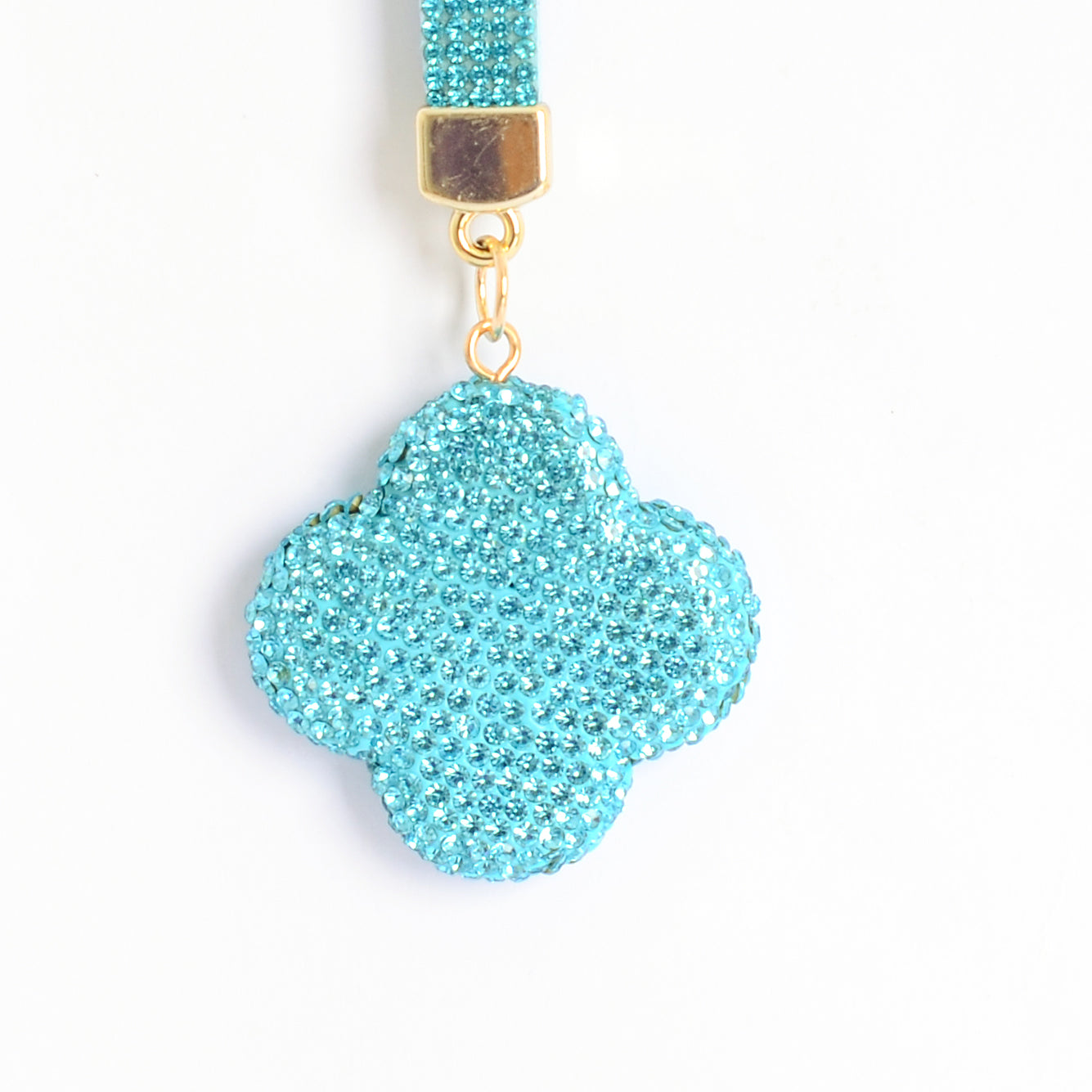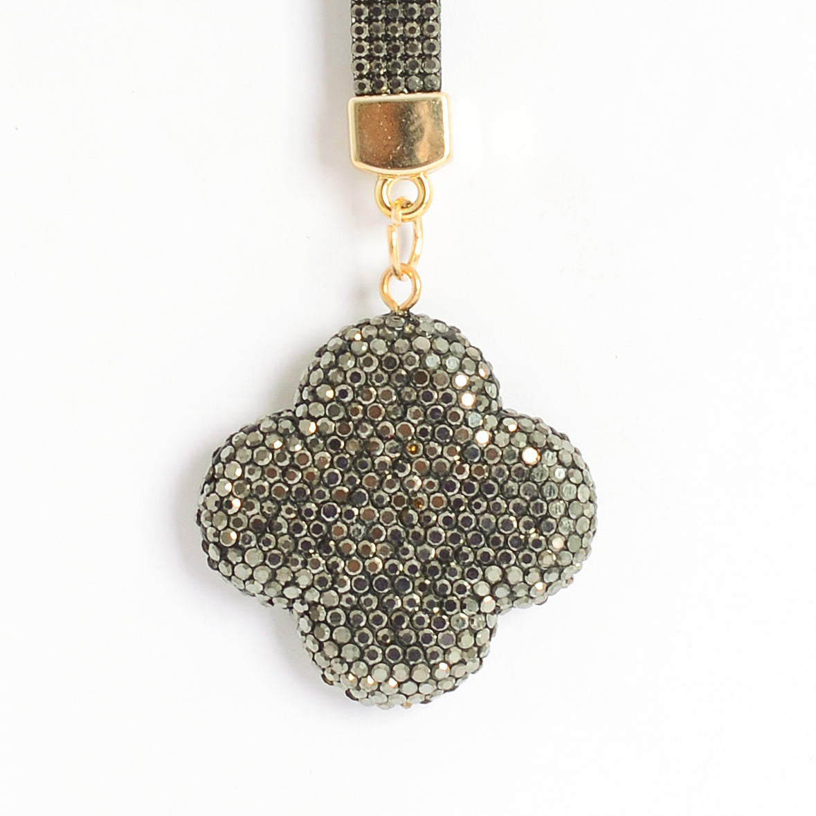 - ميدالية و سلسلة مفاتيح ودلايه شنطة يد على شكل زهرة رباعية بأحجار الراين :
