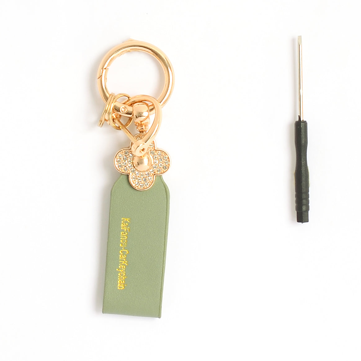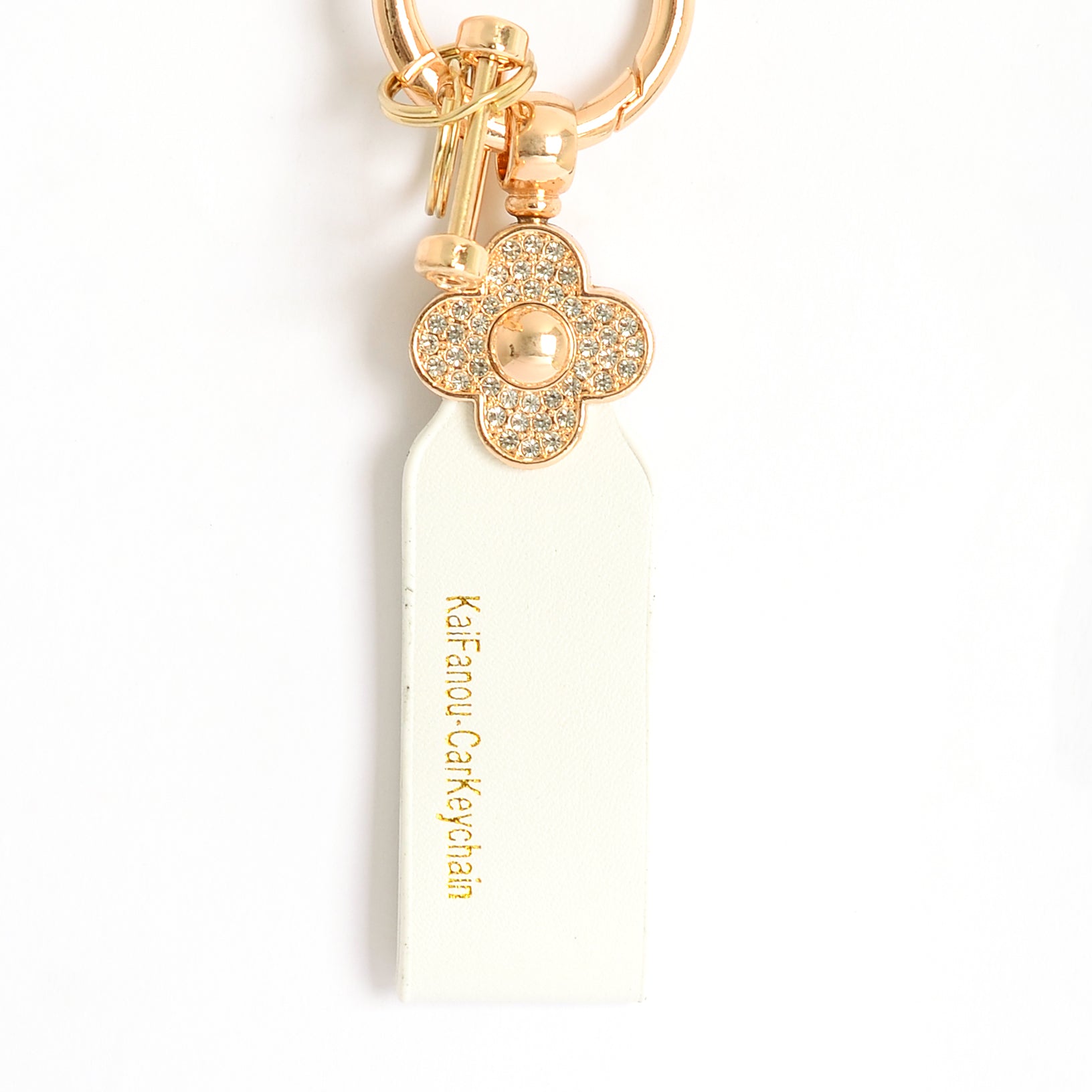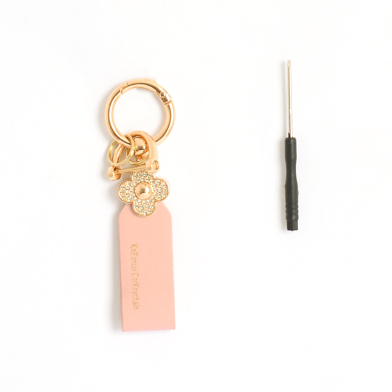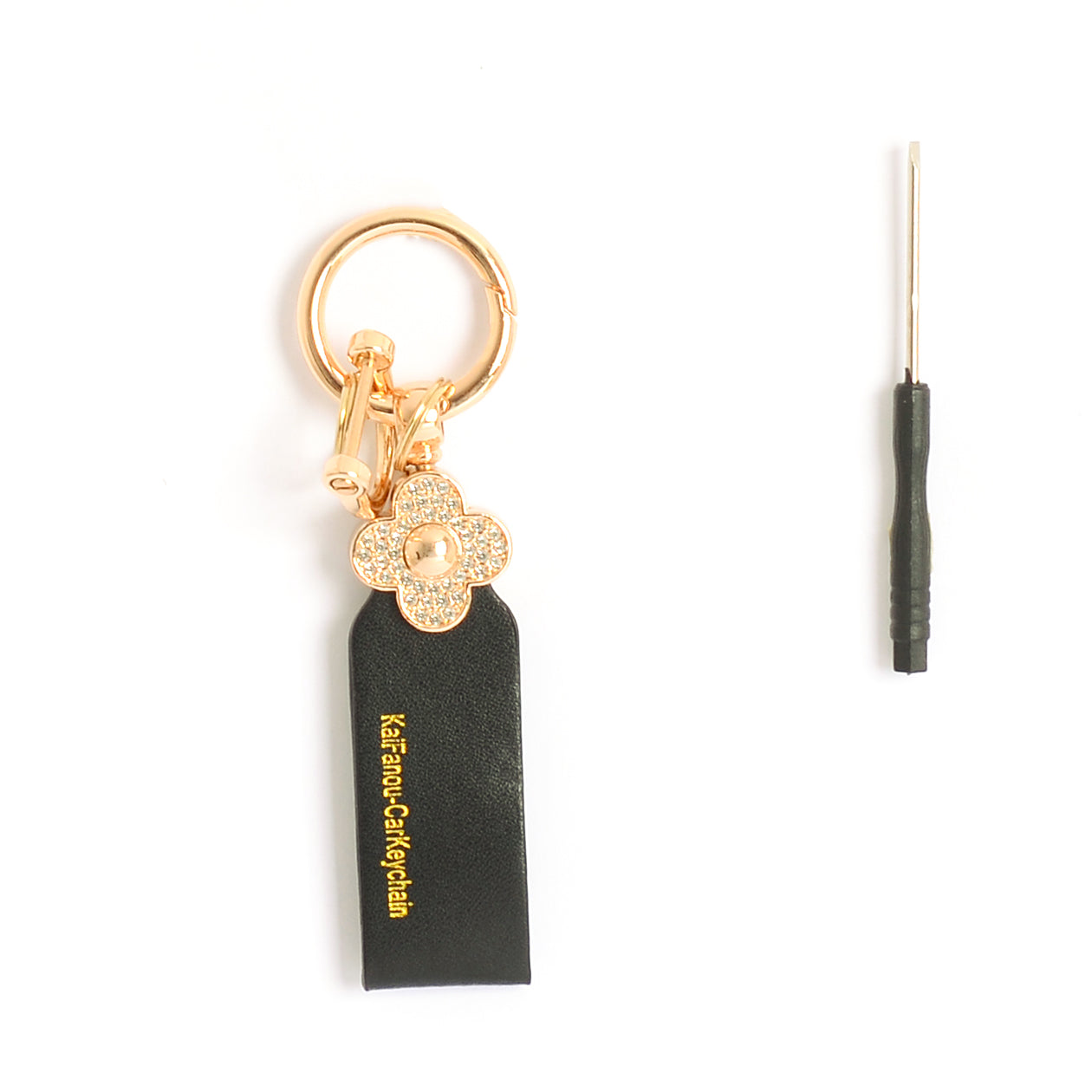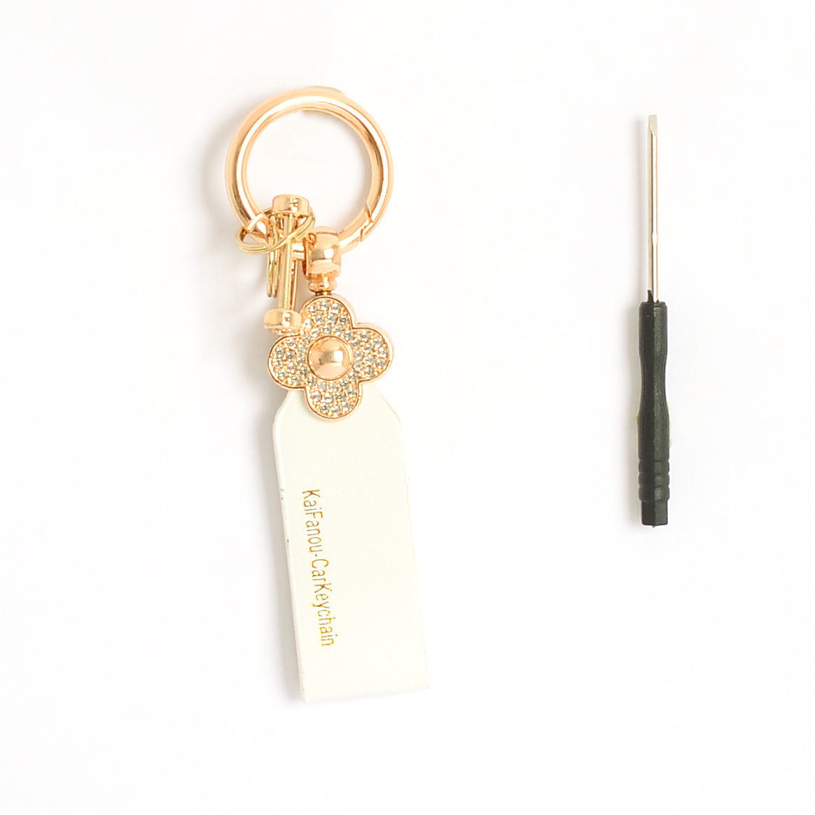 - ميدالية و سلسلة مفاتيح ودلايه شنطة يد على شكل زهرة رباعية مرصعة بفصوص الزركون (مرفق بمفك لسهولة فكها و تركيبها للشنط) :