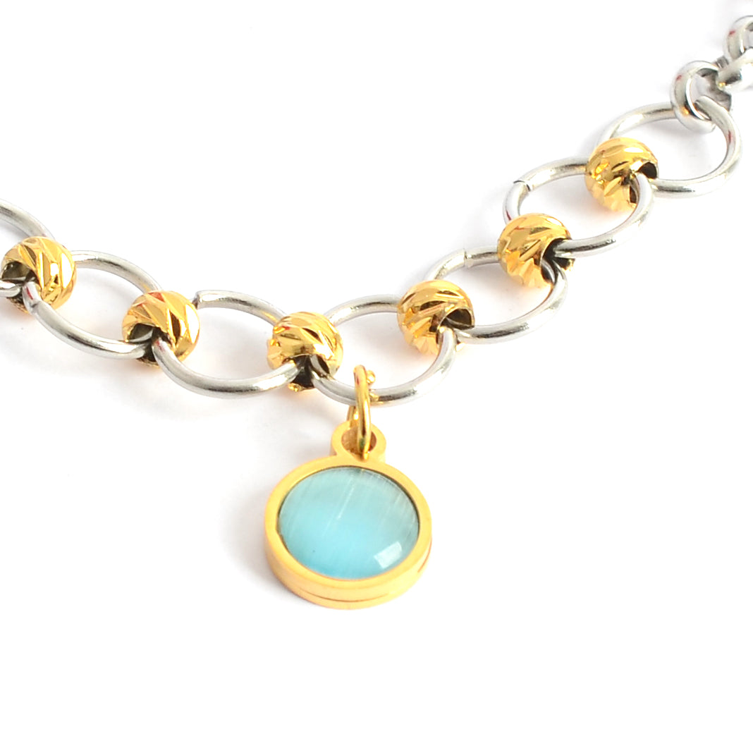 - تصميم بدلاية مزينة بحجر دائري باللون الفيروزي يتميز الانسيال بلمعانه المميز
