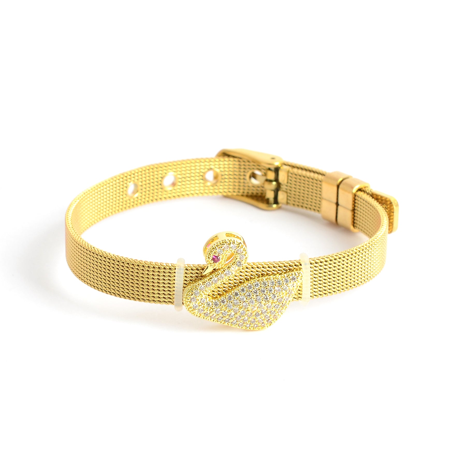 - انسيال قابل للتعديل تصميم ساعة بفلامنجو مزينة بفصوص زركون