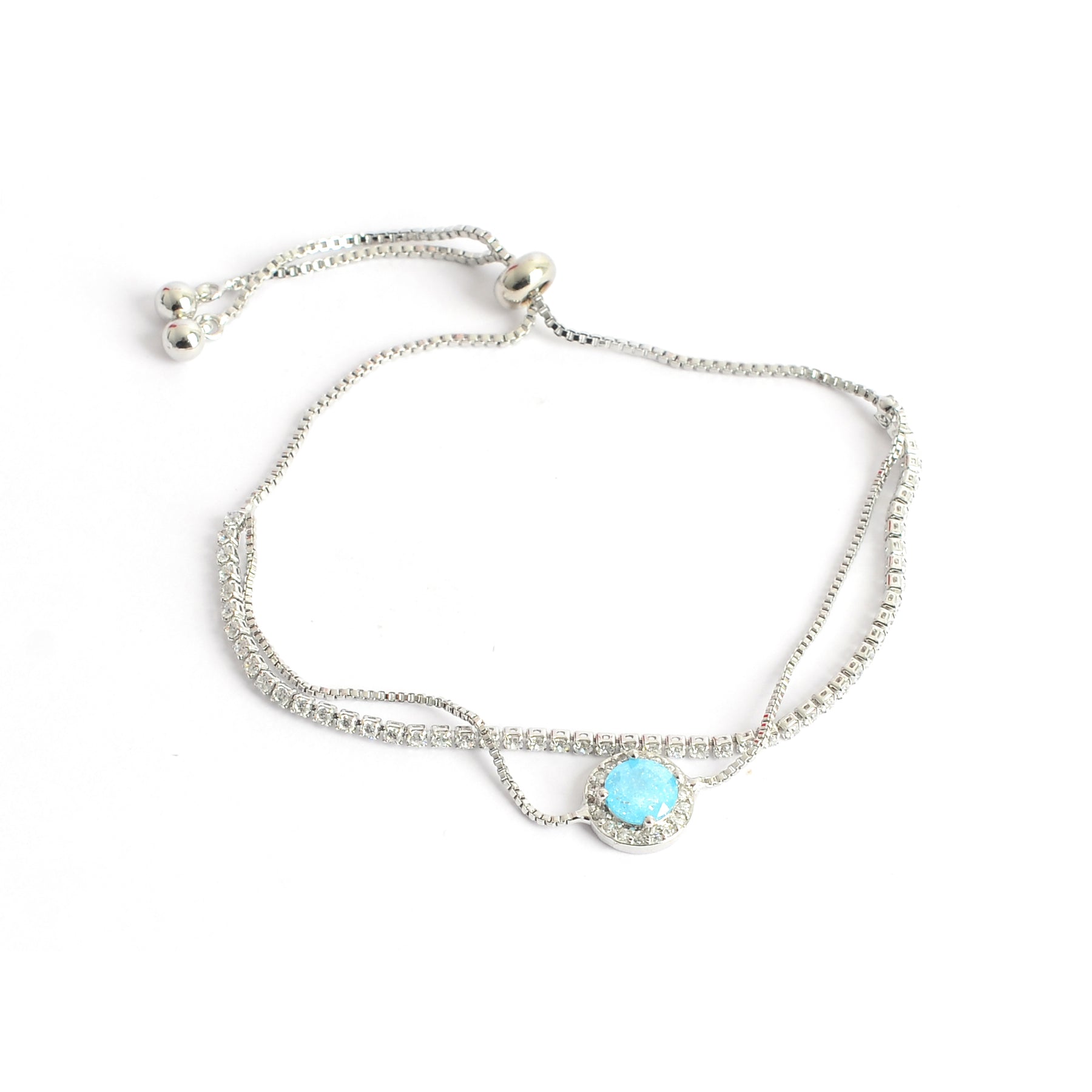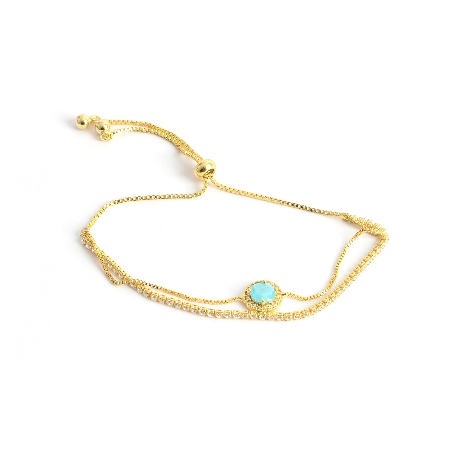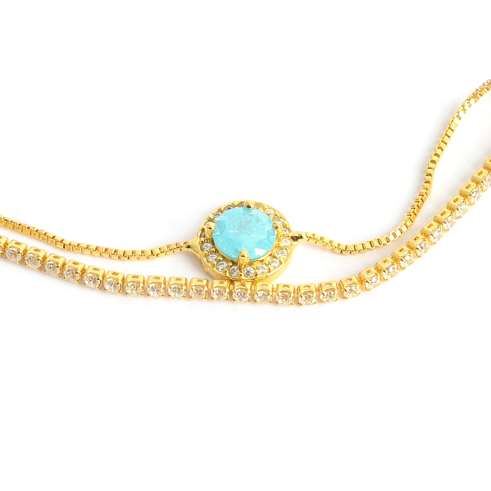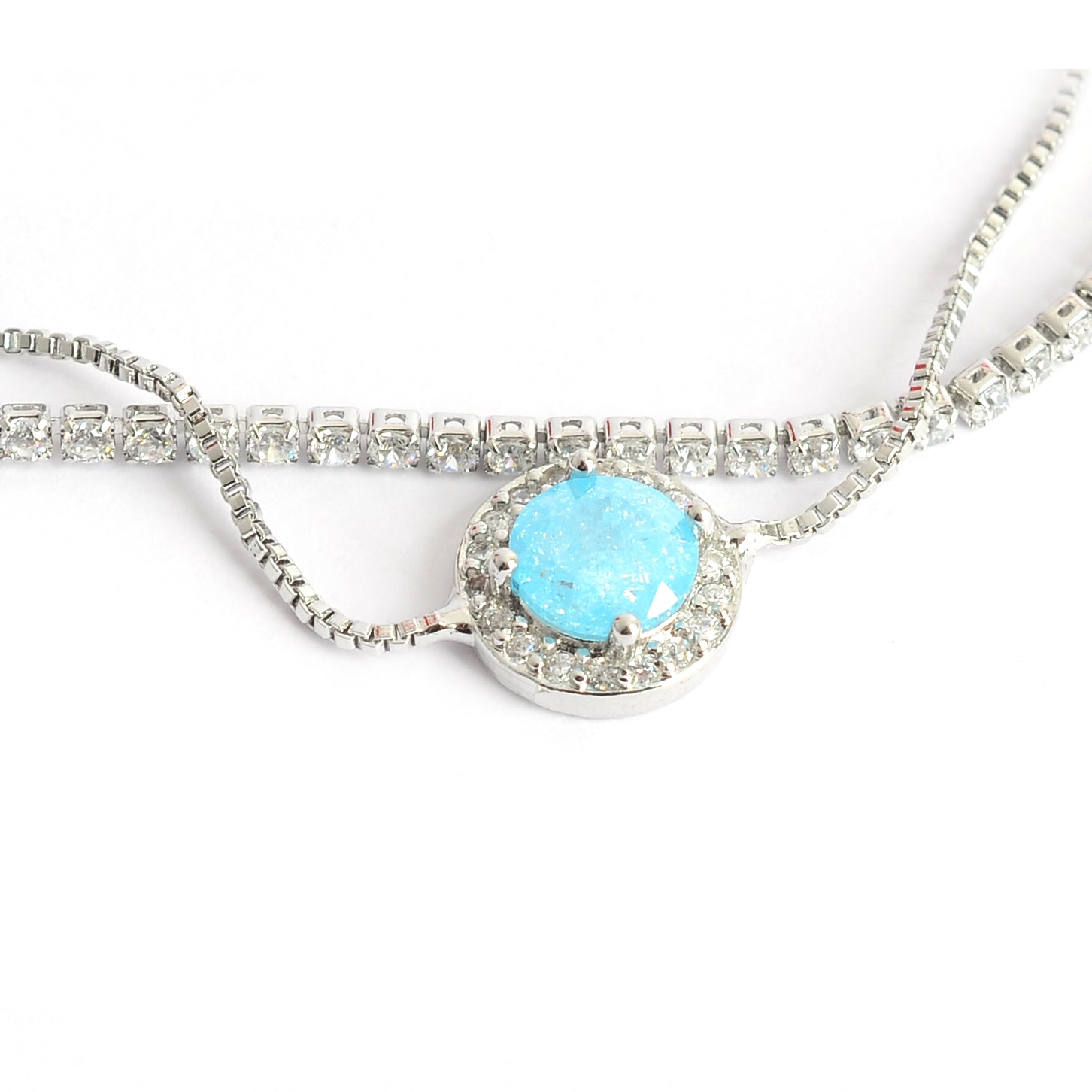 - مزين بحجر دائري باللون الفيروزي في المنتصف يحيط به إطار صغير مرصع بفصوص زركون لامعة تضيف لمسة راقية