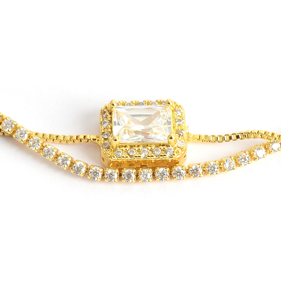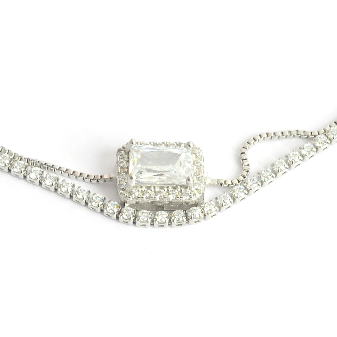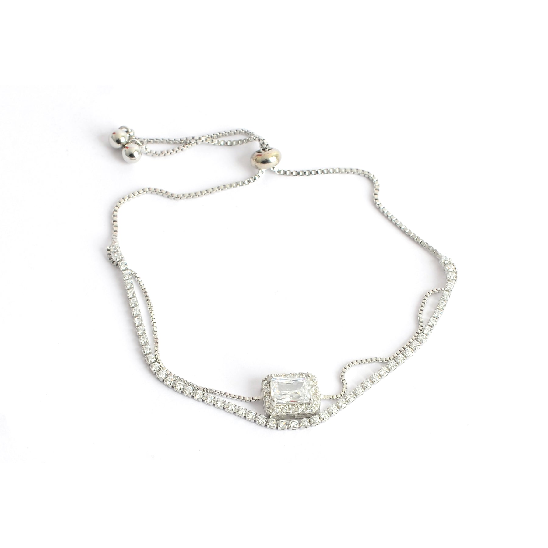 - مزين بحجر مربع شفاف في المنتصف يحيط به إطار مرصع بفصوص لامعة تضيف لمسة فخمة ومميزة