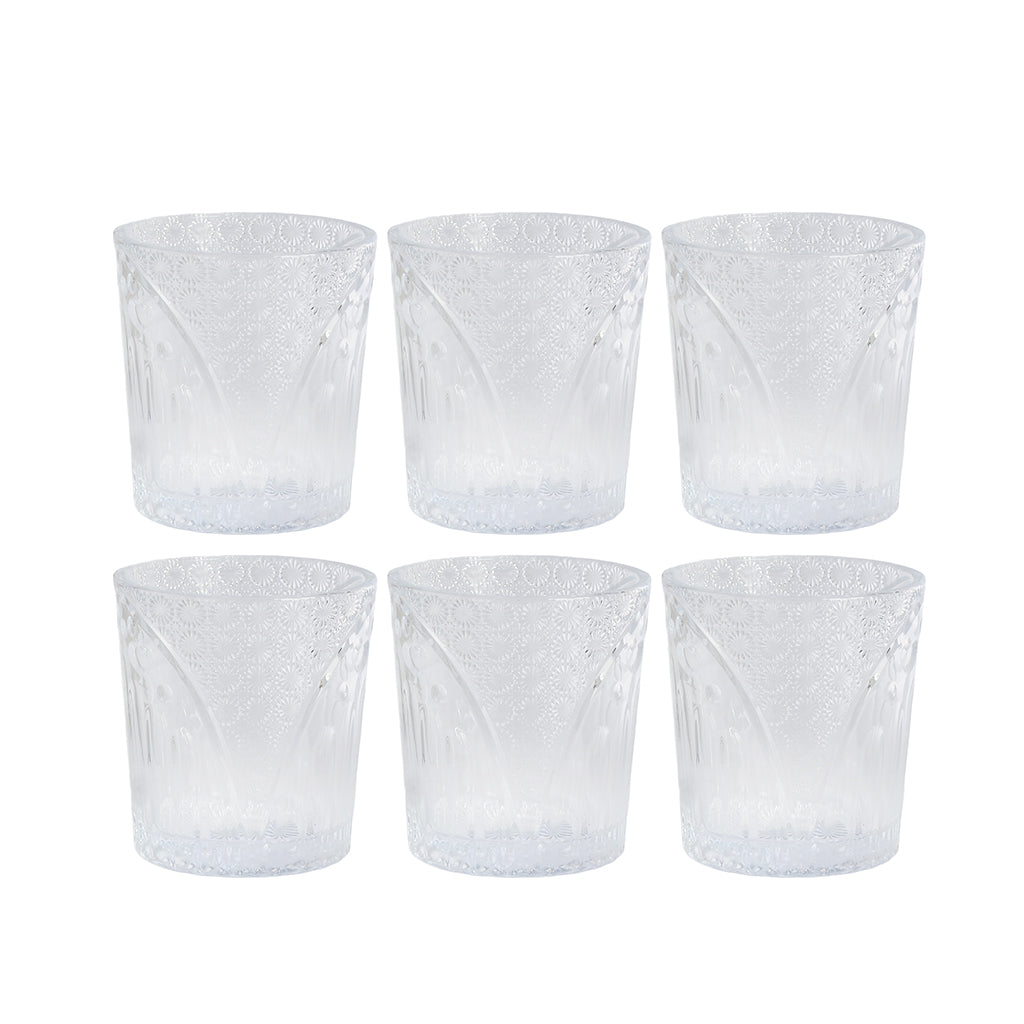- قم أكواب زجاج مكون من 6قطع بنقشات بارزة،أكواب الشرب هذه مصنوعة من زجاج سميك