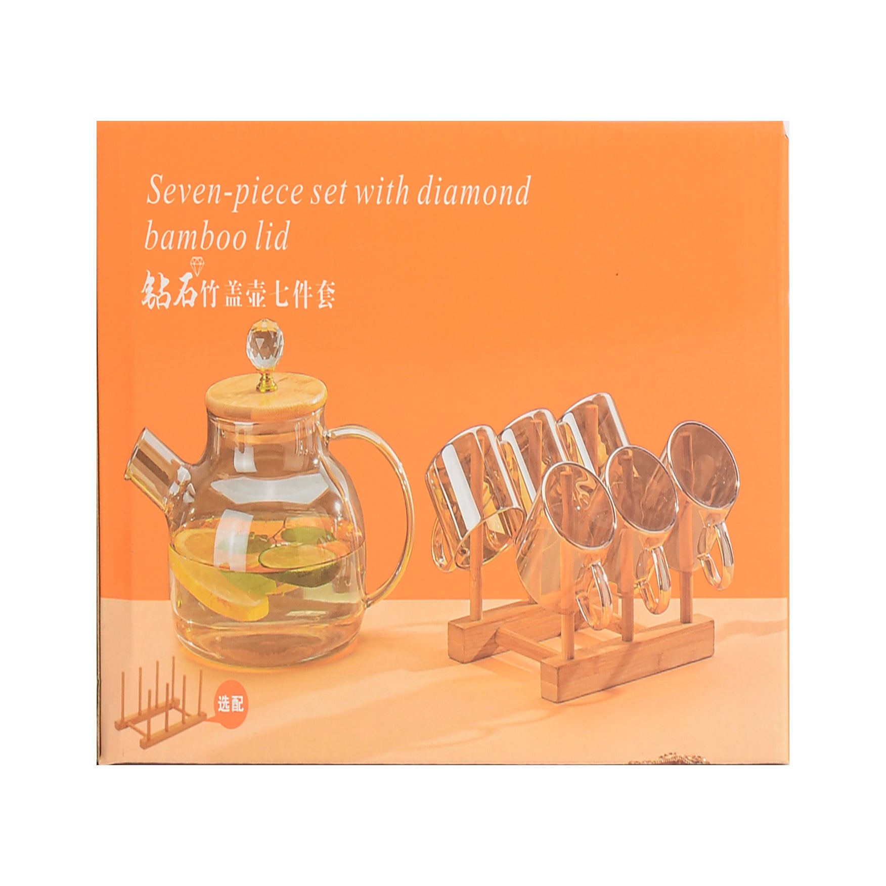 - غطاء الإبريق مصنوع من الخيزران، ويأتي بمقبض كريستالي، مما يسهل الفتح والإغلاق ويضفي لمسة من الفخامة