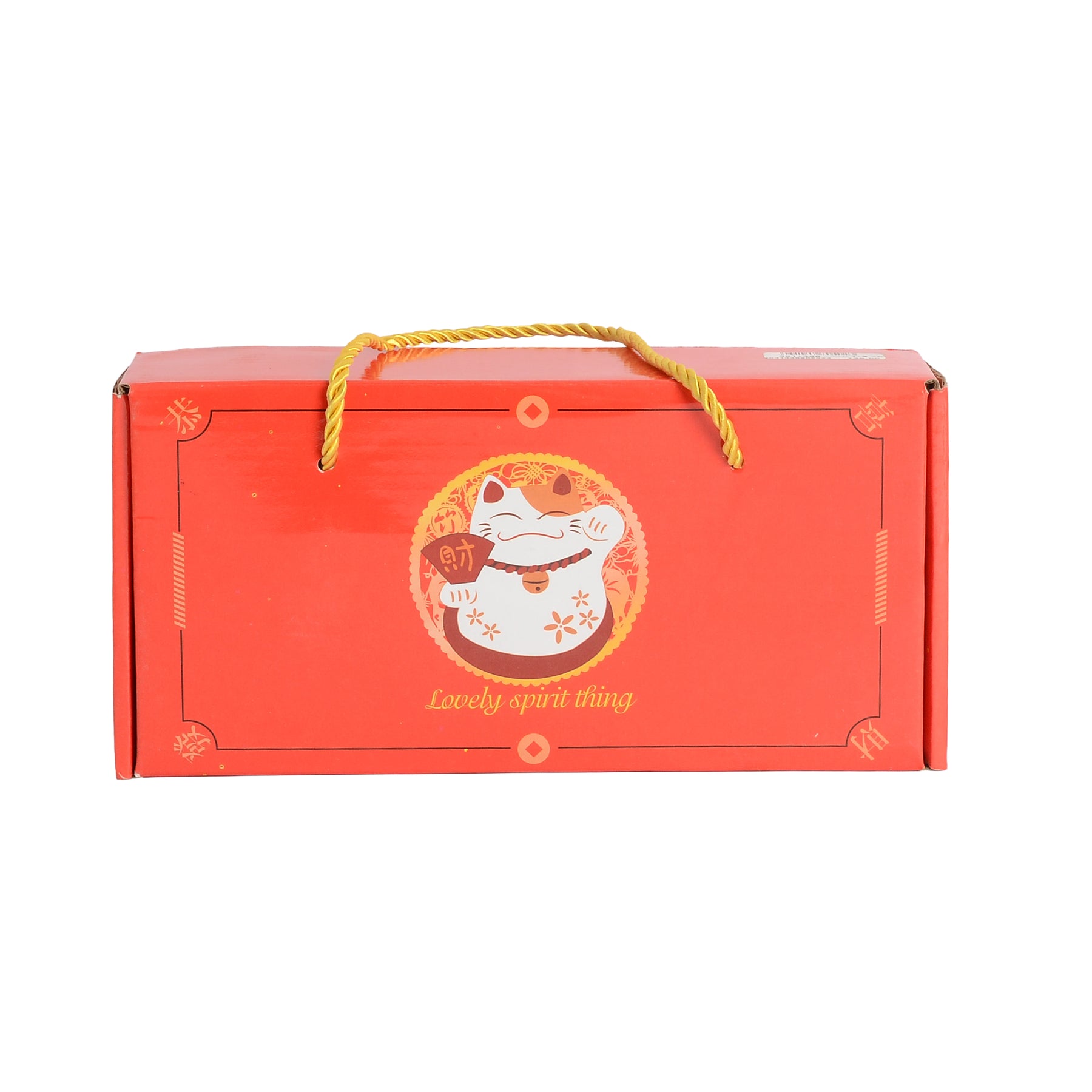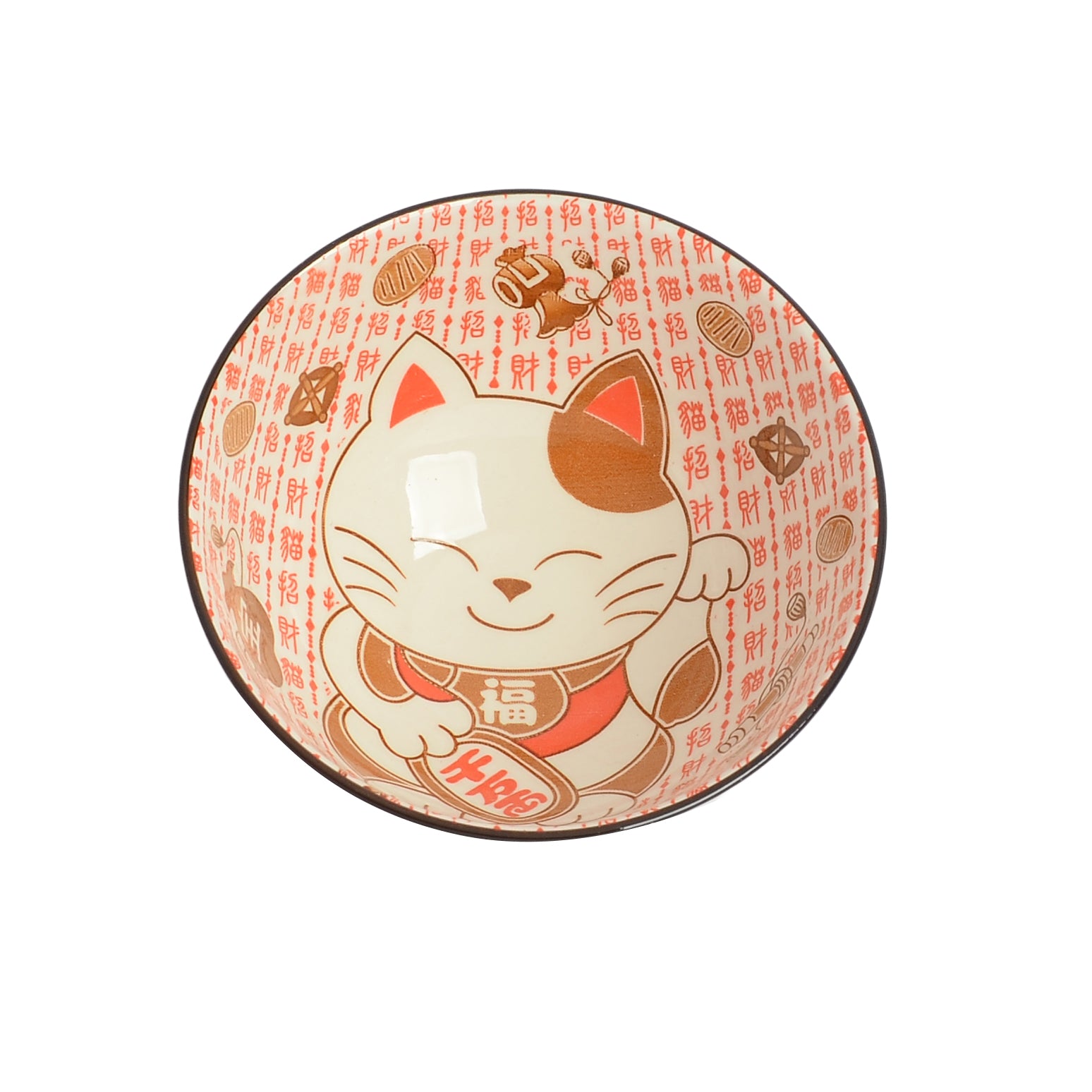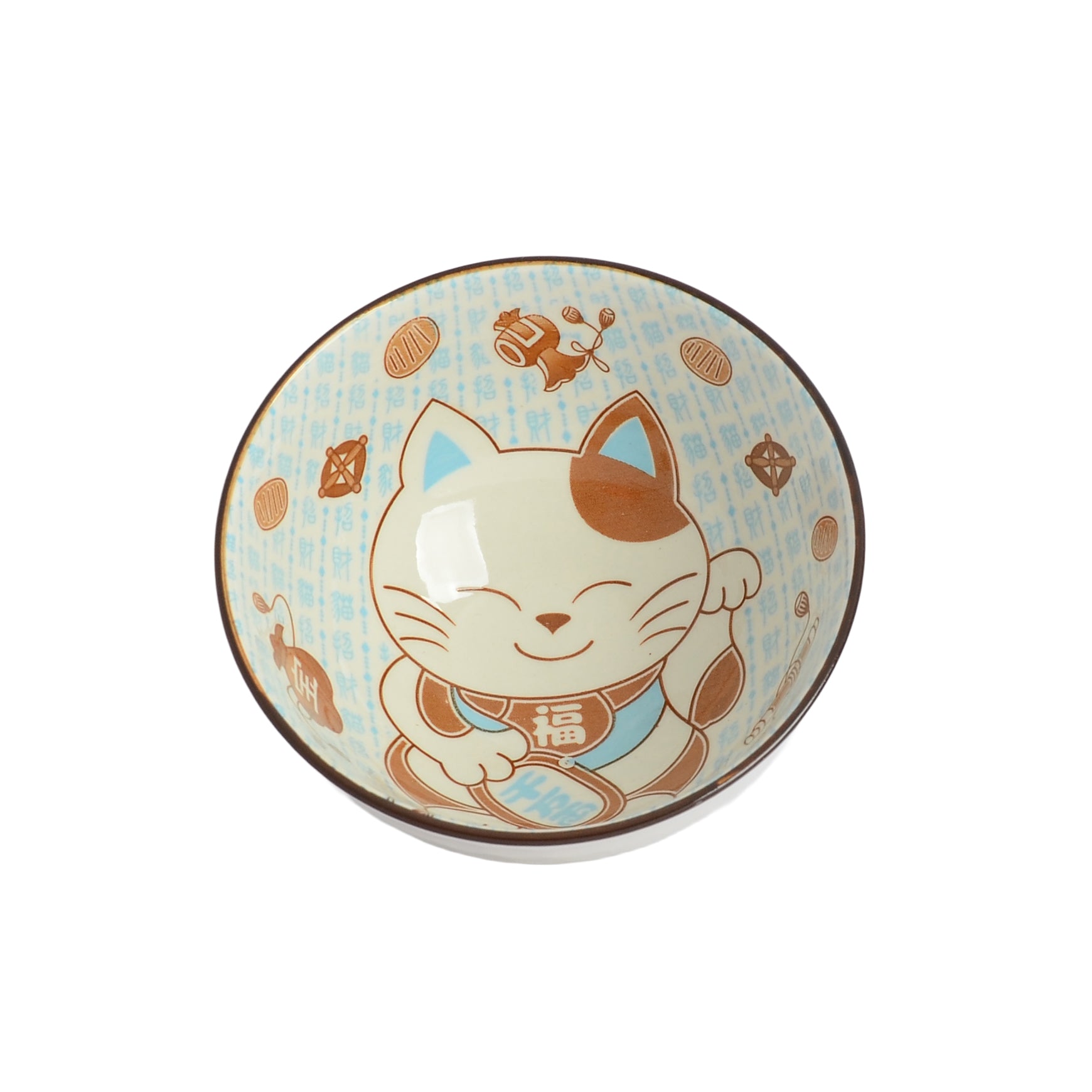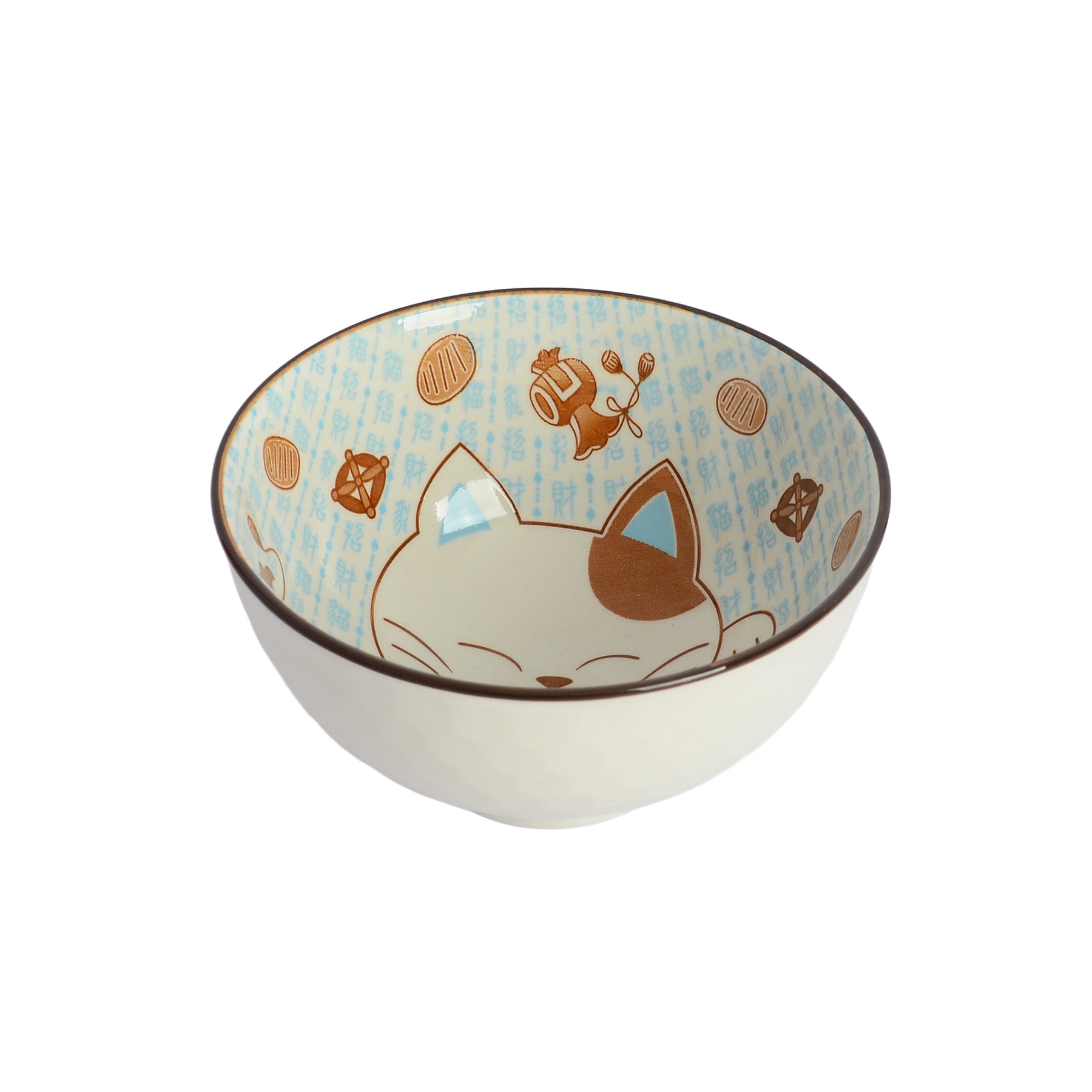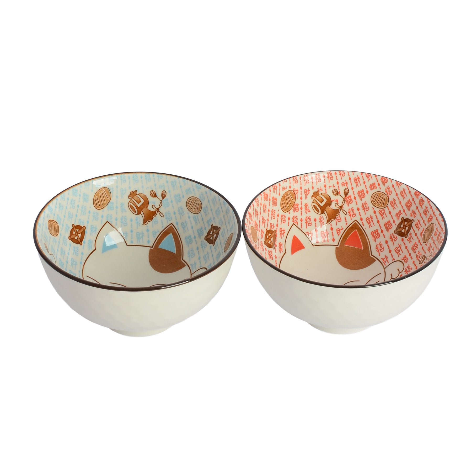 - تتميز مجموعة الأوعية الخزفية الخاصة بنا بملمس مخطط أبيض كلاسيكي من الخارج ونمط قطة الحظ اللطيفة من الداخل