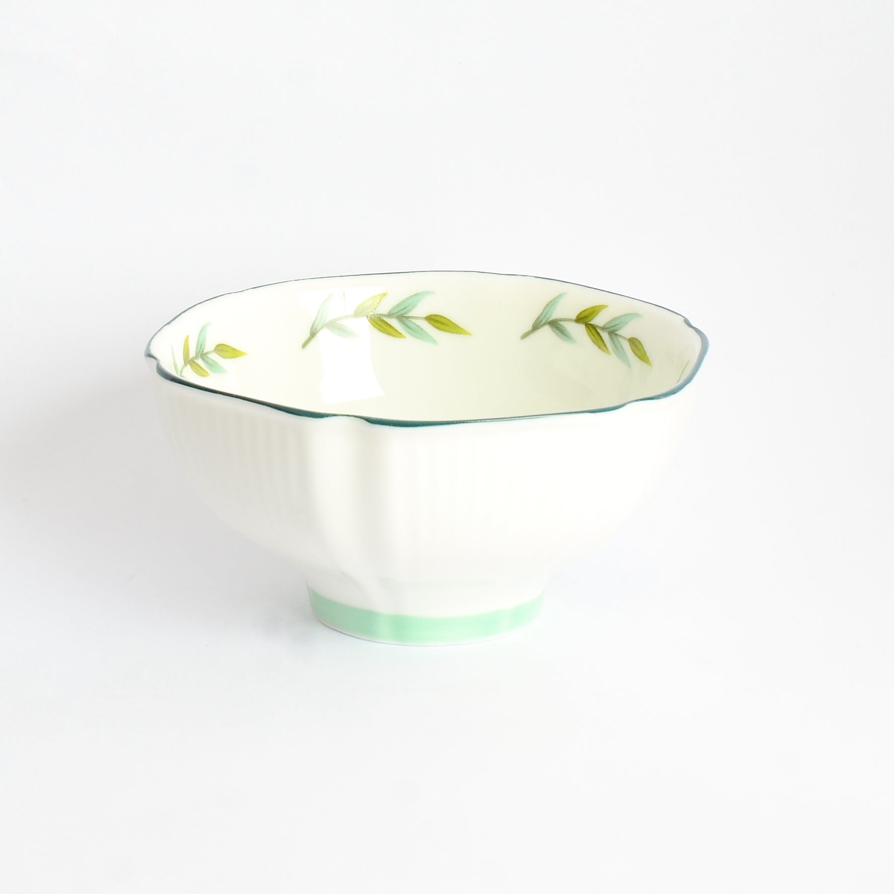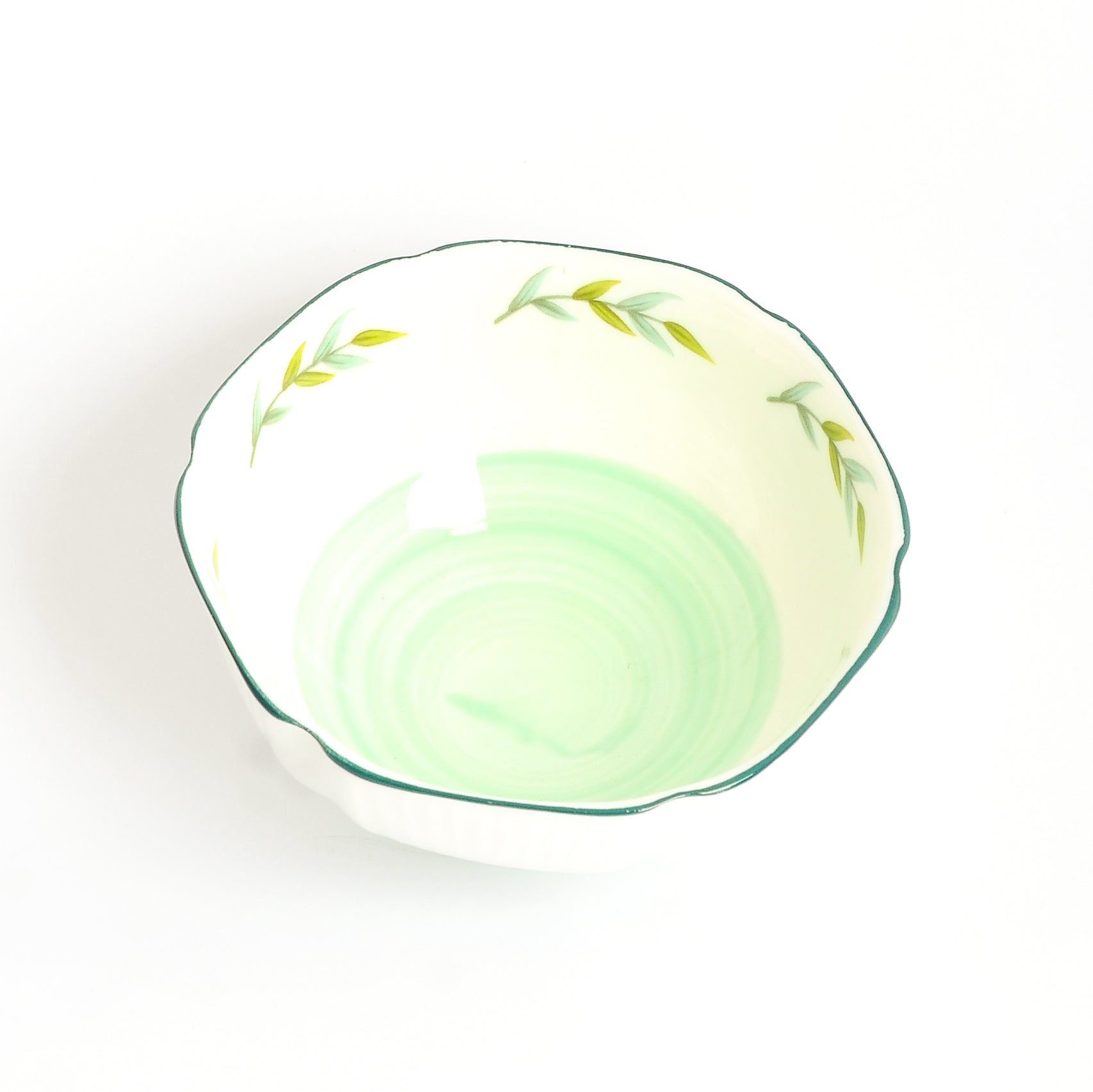 - يتميز بتصميم بسيط وعصري مع نقشه اورق شجر خضراء صغيرة علي الحافه ودوامه خضراء فاتحه في قاع الوعاء