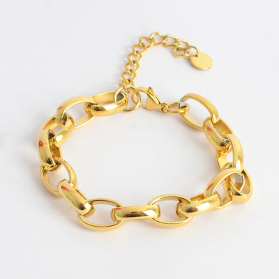 أنسيال يد مكتنز للنساء والفتيات على شكل سلسلة ربط بيضاوية كوبية لون ذهبي