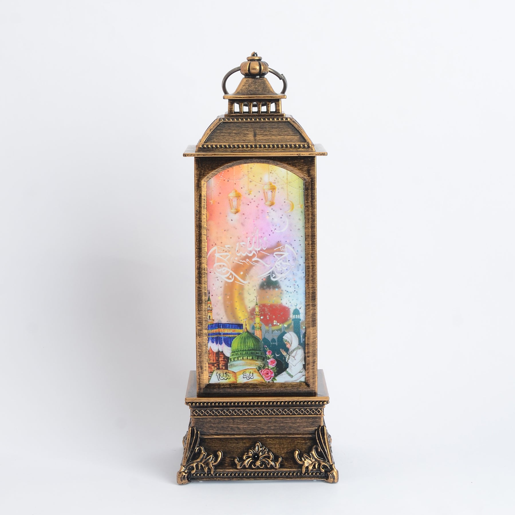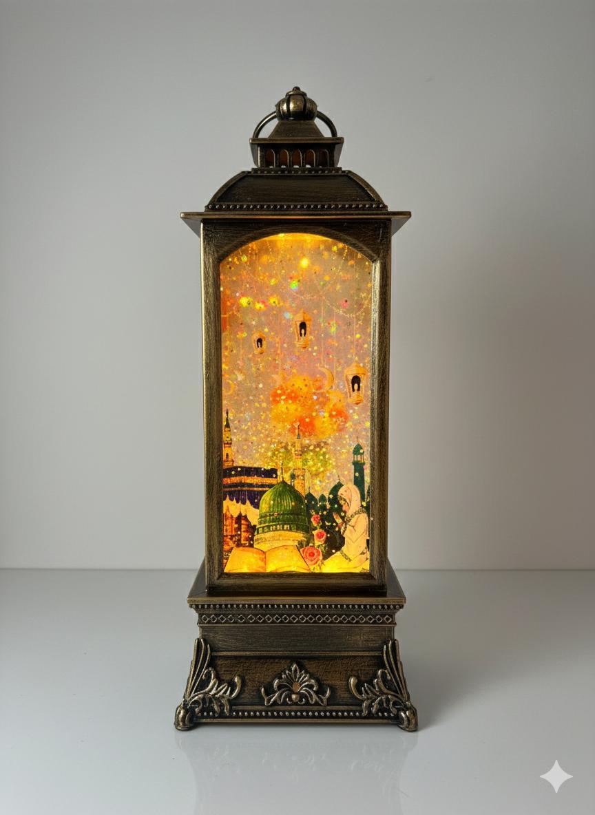- مصباح ديكوري بتصميم رمضاني مميز، مناسب للتزيين داخل البيت أو على الطاولات والرفوف