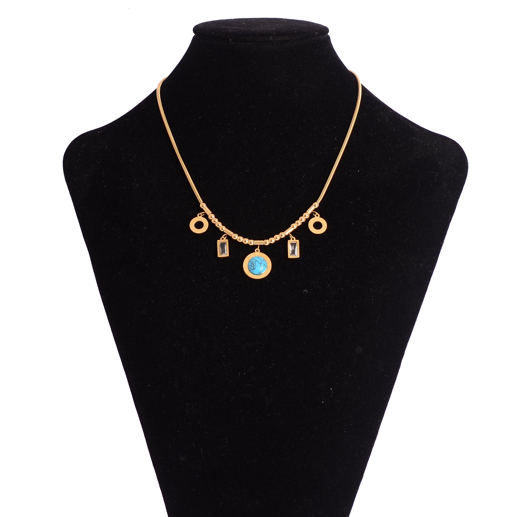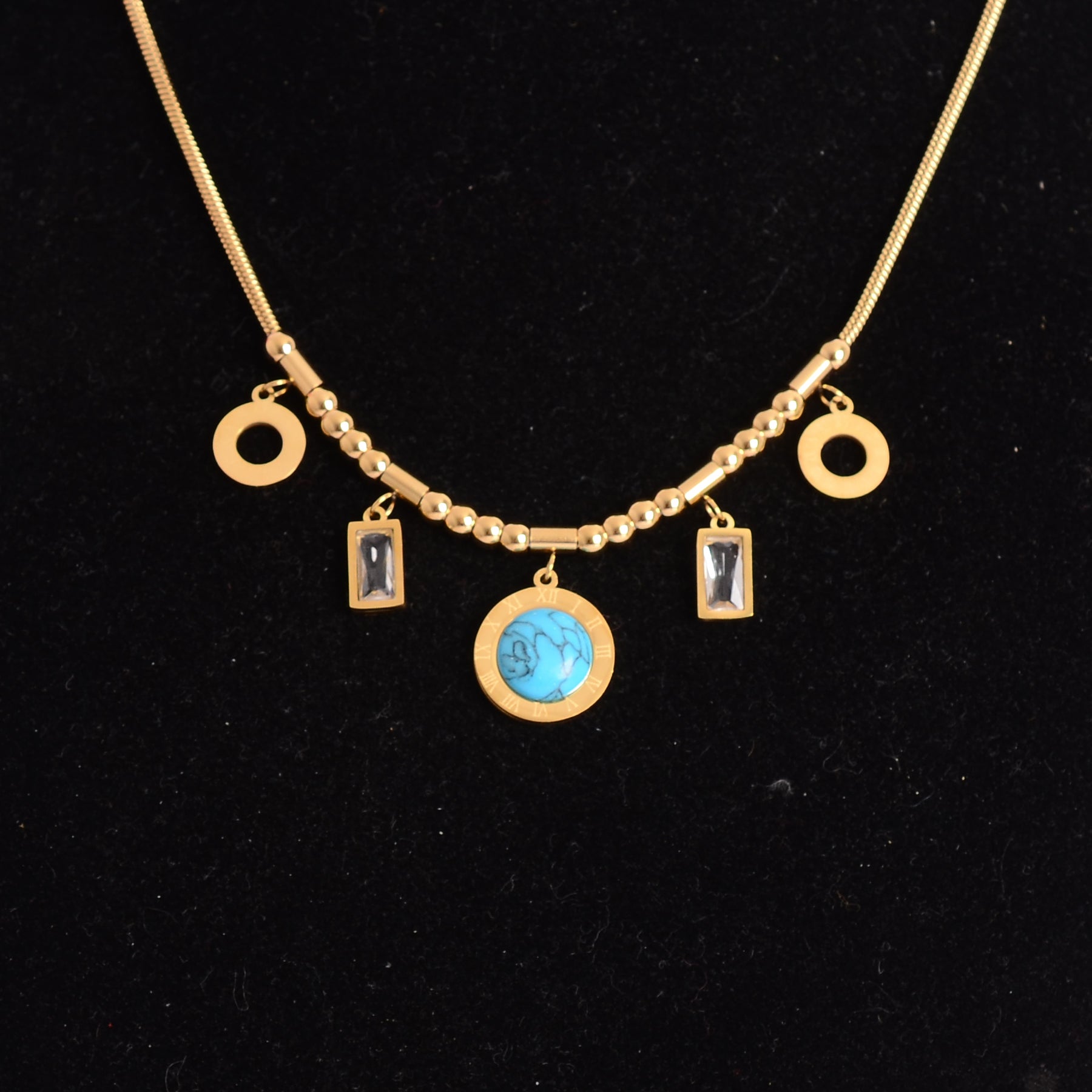 - سلسلة ثعباني مع دلايات دوائر الأرقام الرومانية بفص حجر فيروزي :